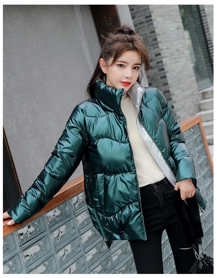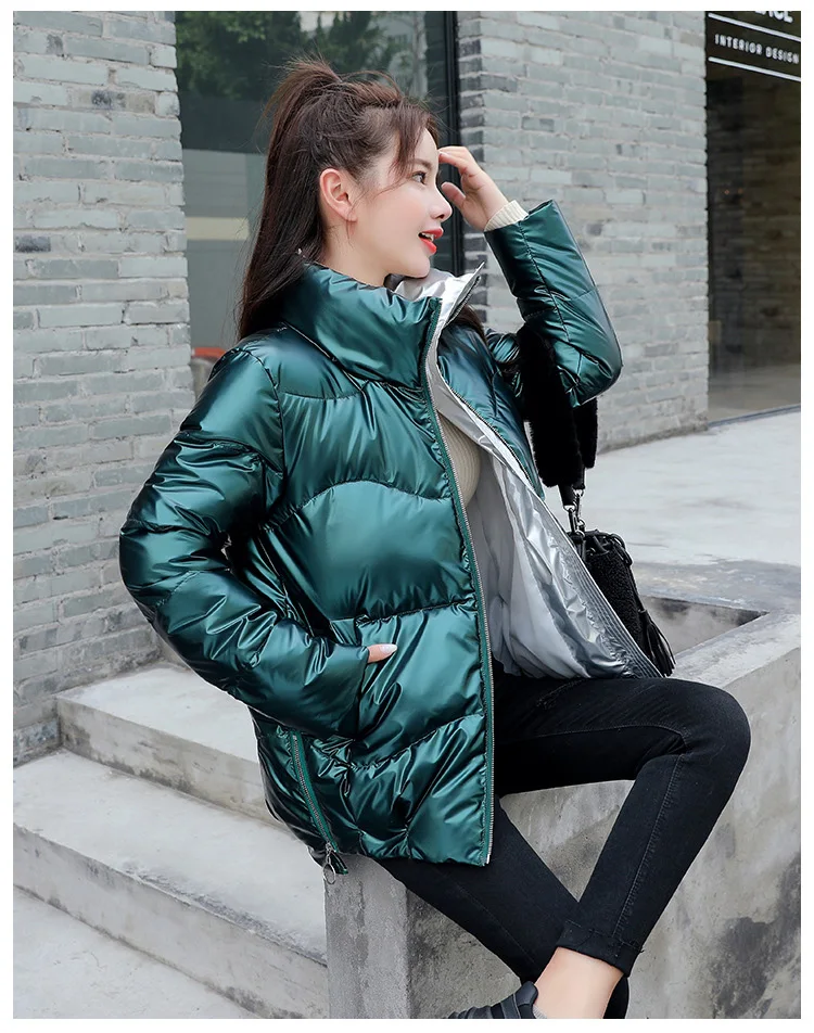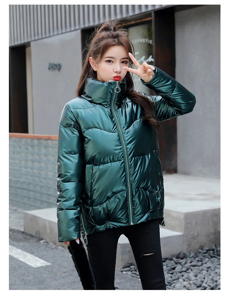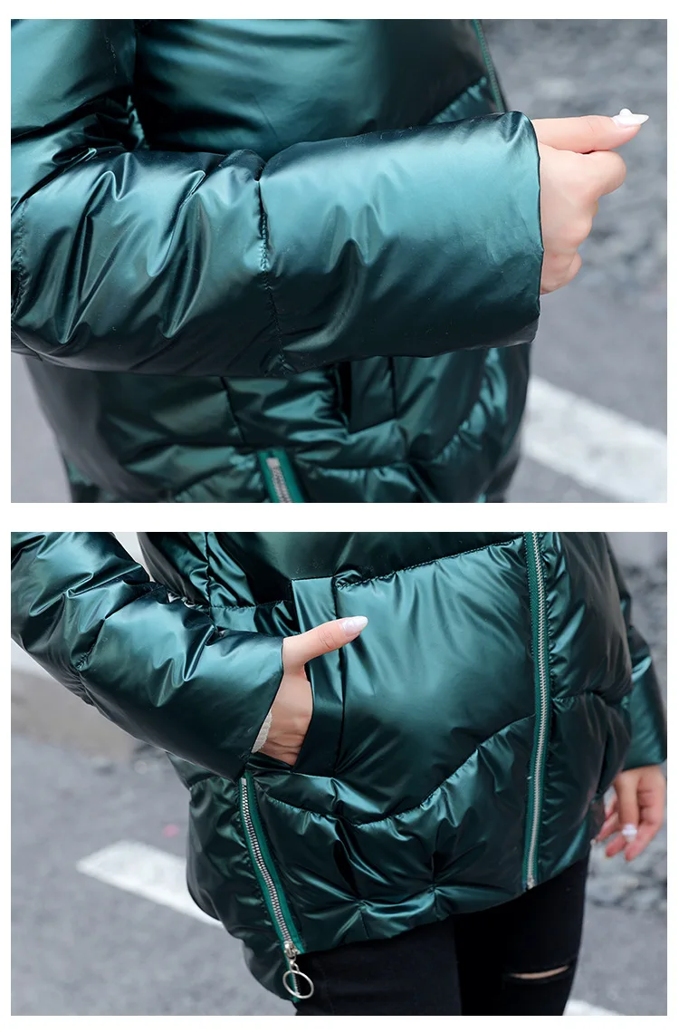 Модный Блестящий пуховик, зимнее пальто для женщин, корейский утепл...