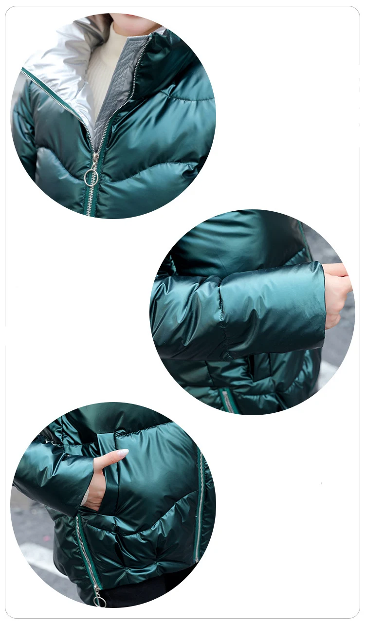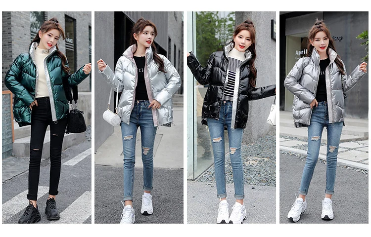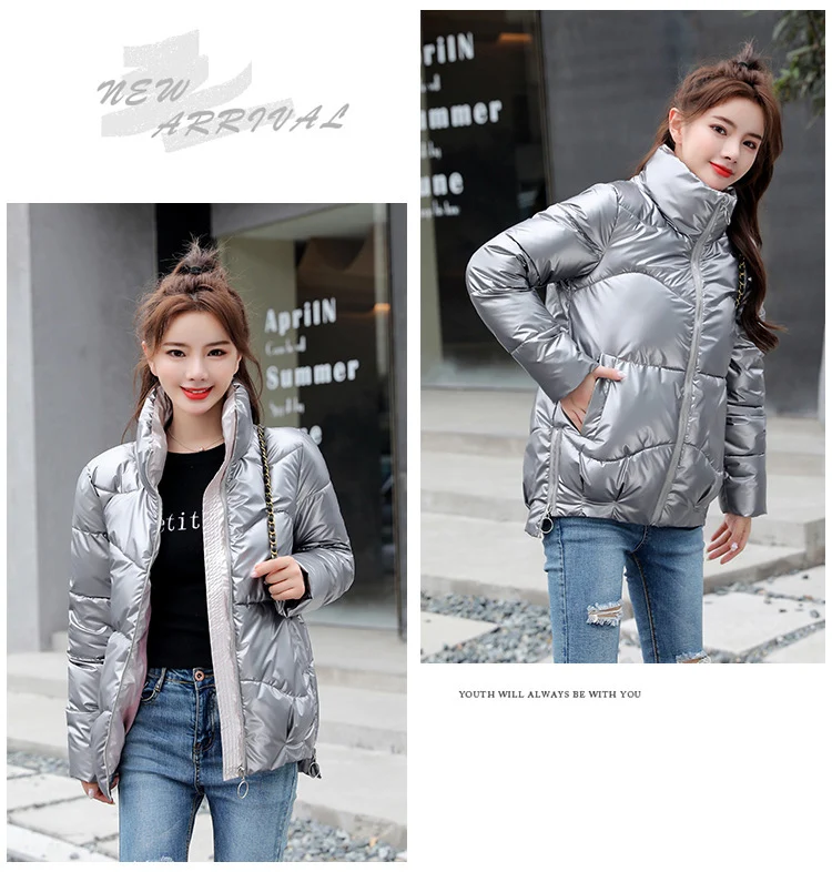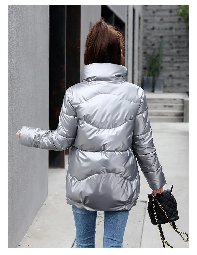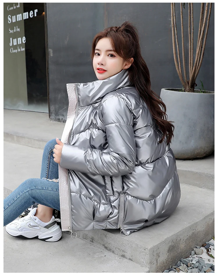 Модный Блестящий пуховик, зимнее пальто для женщин, корейский утепл...