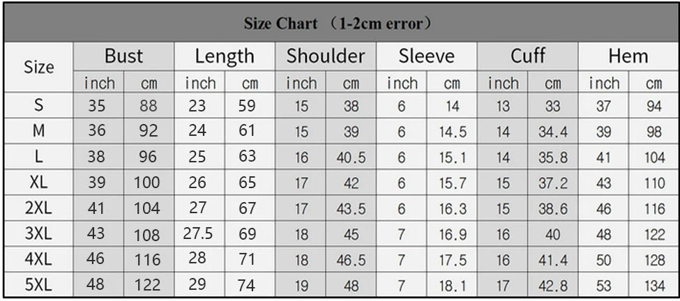 1. Измерьте фактическую длину рубашки, обхват груди, плеч и рукава, сравните с нашей таблицей размеров.2, это Азиатский Размер, и только для справки, может иметь 1-3 см погрешности из-за ручного измерения.3. Из-за различий между различными мониторами изображение может не отражать фактический цвет изделия.