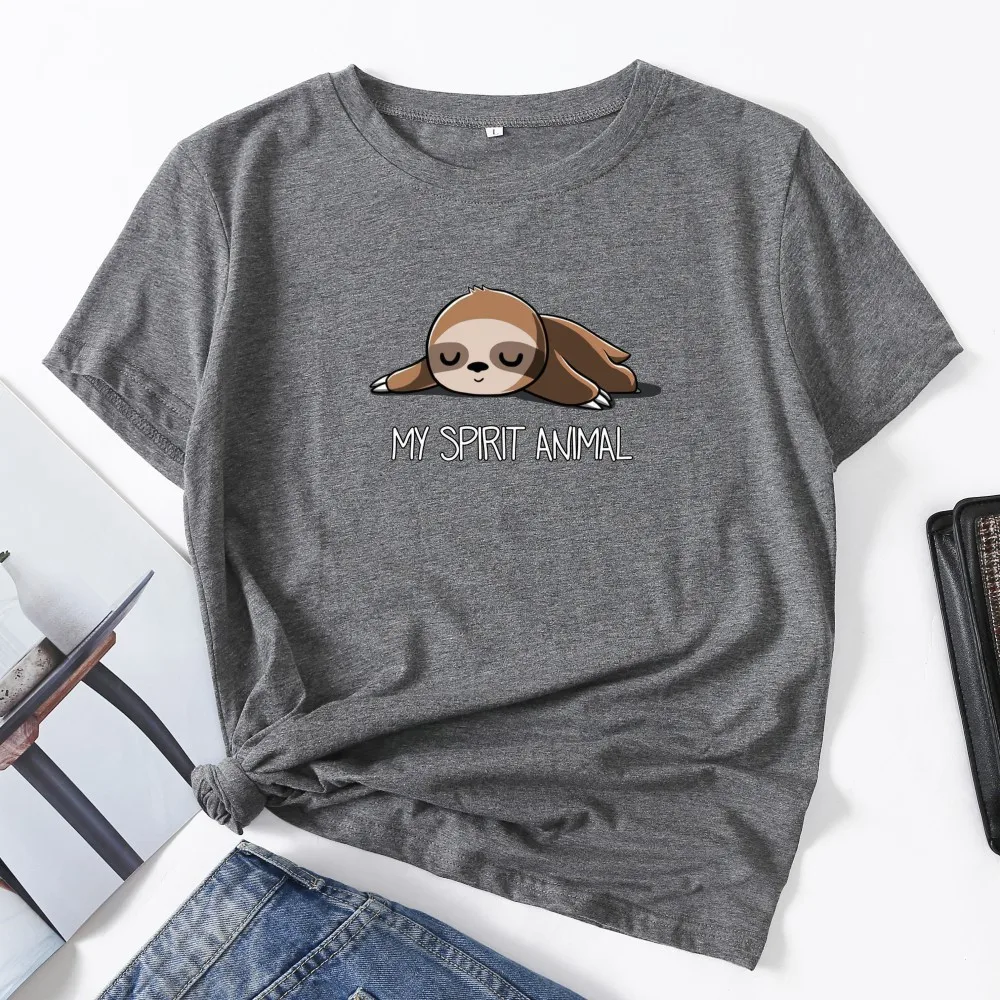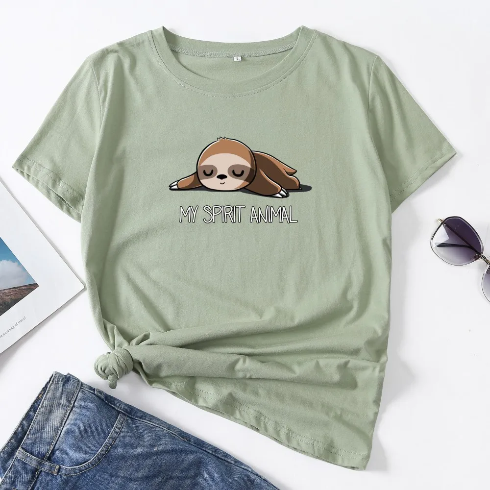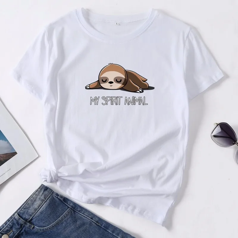 Футболка женская в стиле оверсайз с короткими рукавами, 100% хлопок, милая Повседневная рубашка с круглым вырезом и принтом Ленивца, размера плюс 5XL, лето