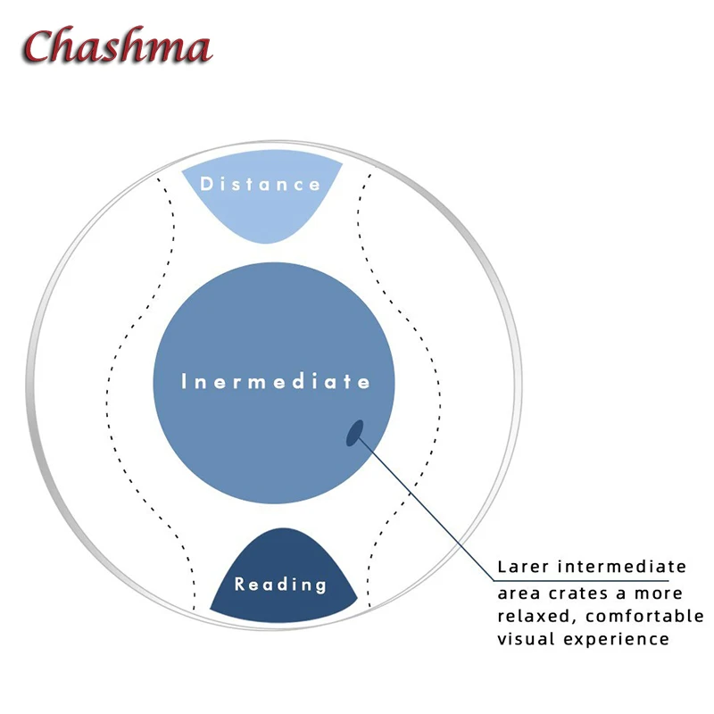 Линзы для промежуточного расстояния Chashma, для офиса, Мультифокальные, с защитой от синего излучения, MR-8