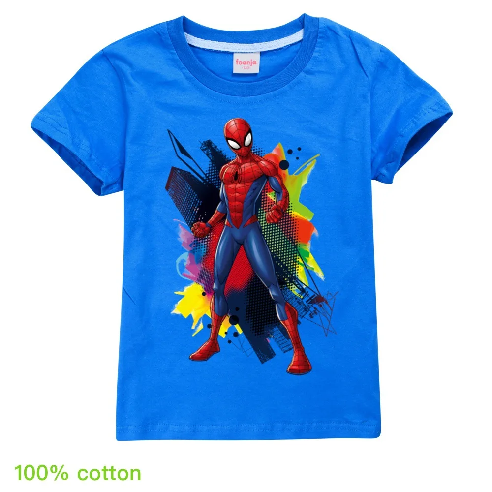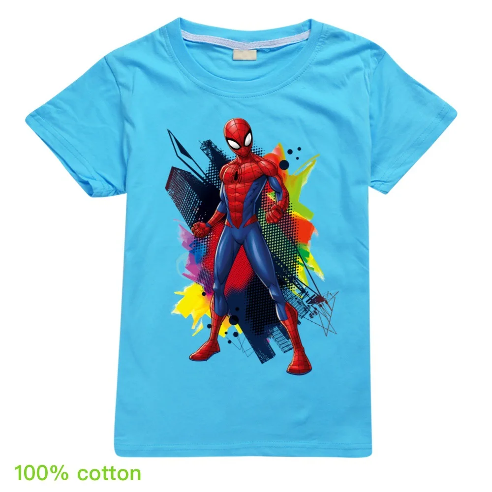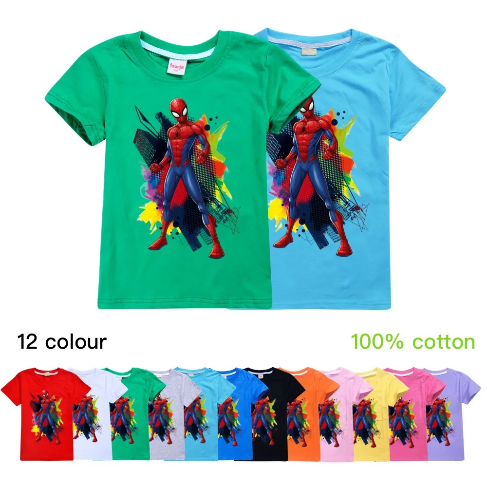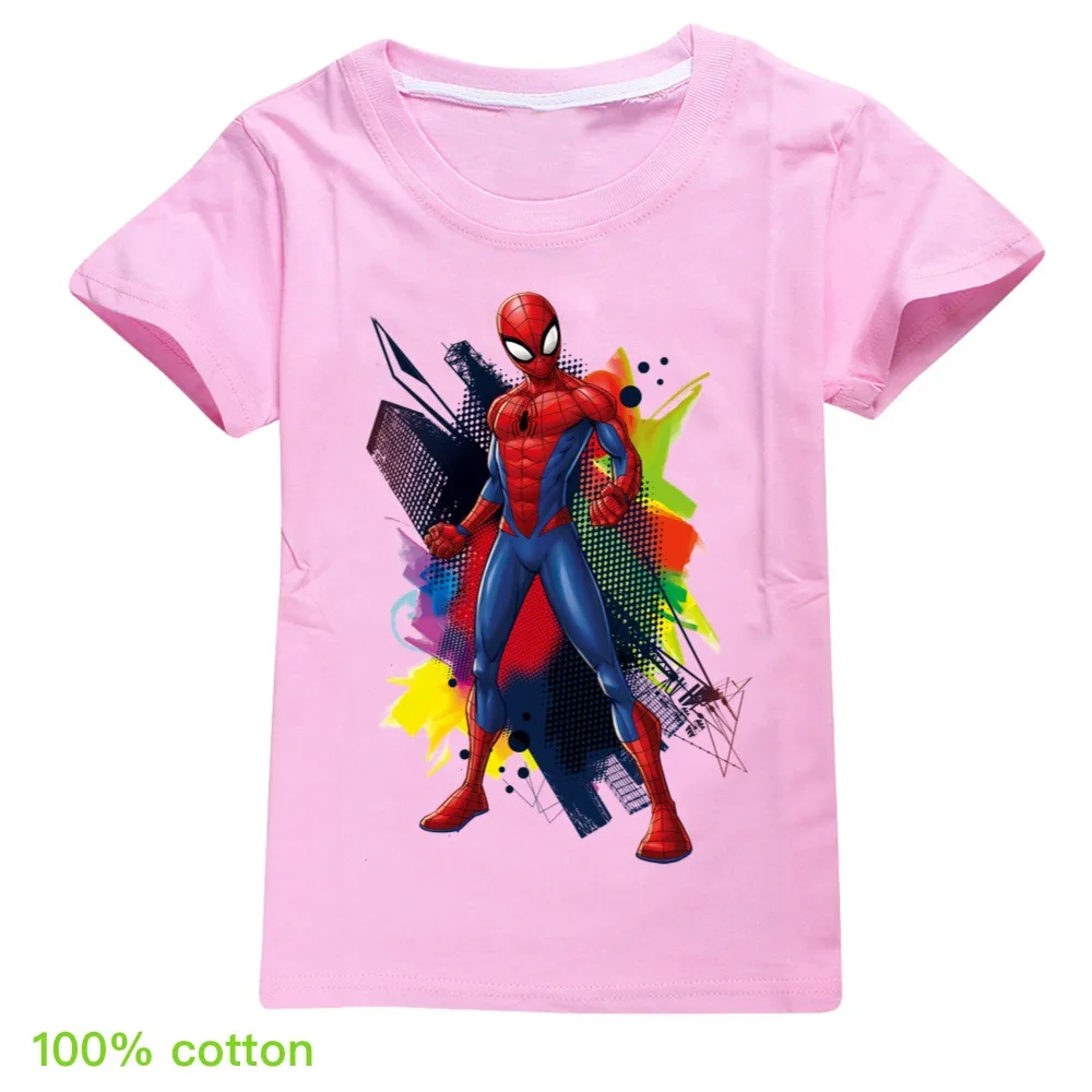 Лидер продаж, новинка 2020 года, детские футболки с короткими рукавами популярный принт Человека-паука с героями мультфильмов, футболка для маленьких мальчиков, Детская футболка для девочек летние топы, костюмы для детей возрастом от От 2 до 16 лет, белый, розовый, желтый, серый, красный, фиолетовый, синий, черный, розовый, зеленый, с номером отслеживания