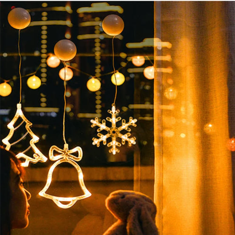 Рождественские украшения, гирлянда в виде снеговика, Санта-Клауса, оленя на присосках с питанием от батарейки, украшение для окон