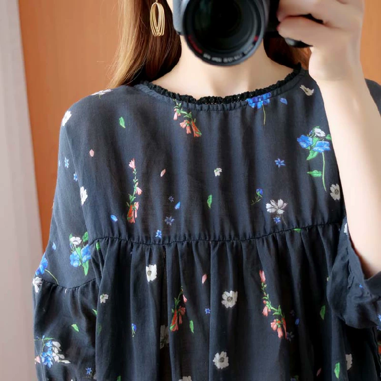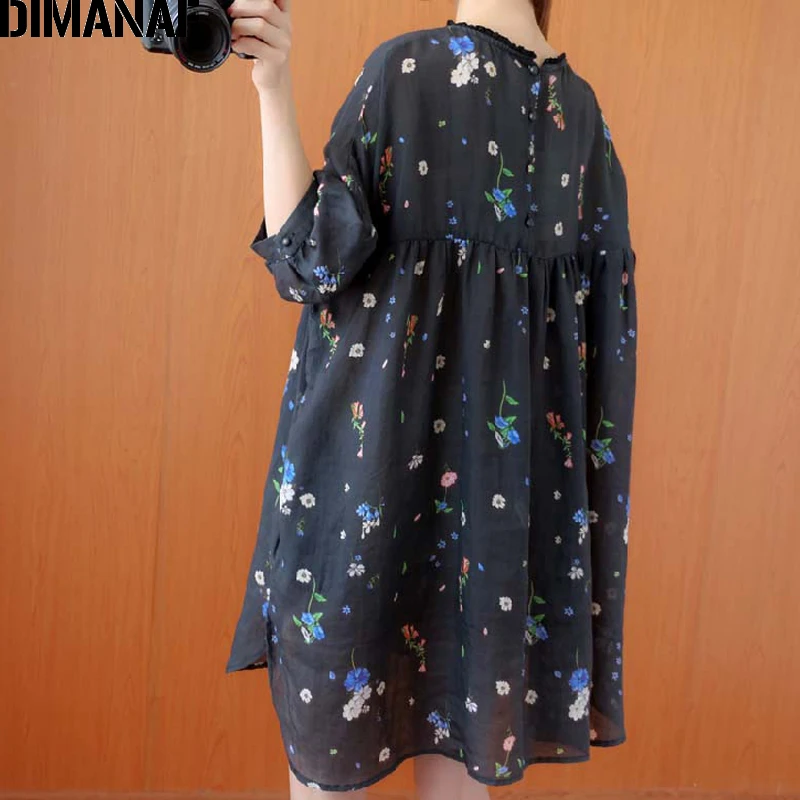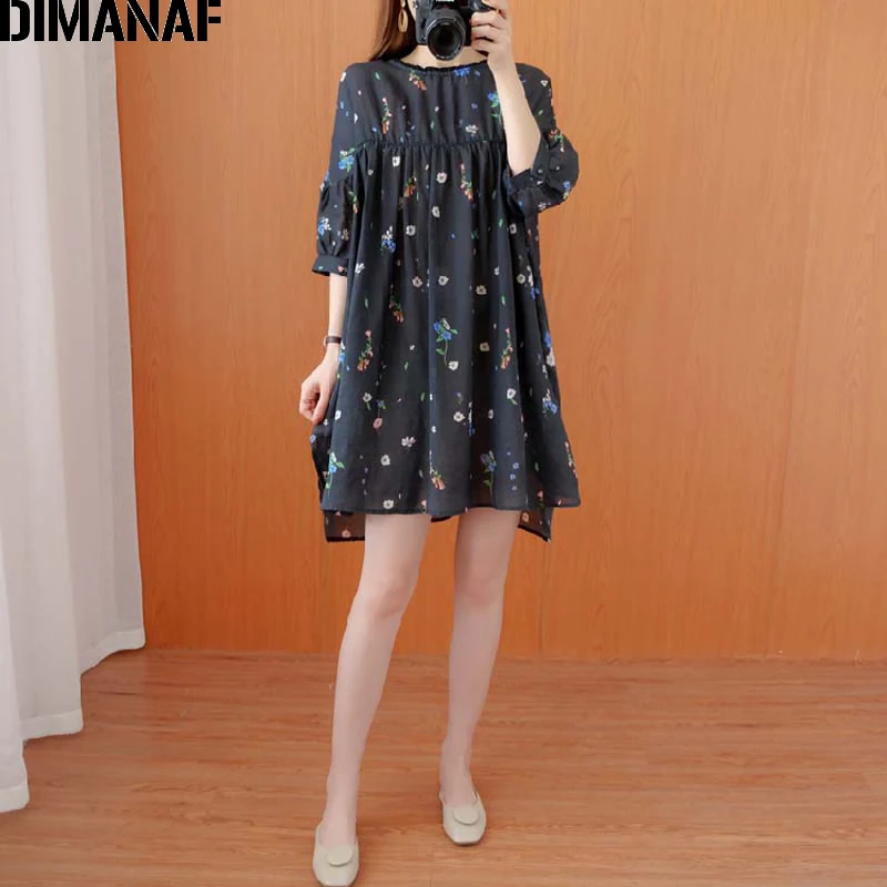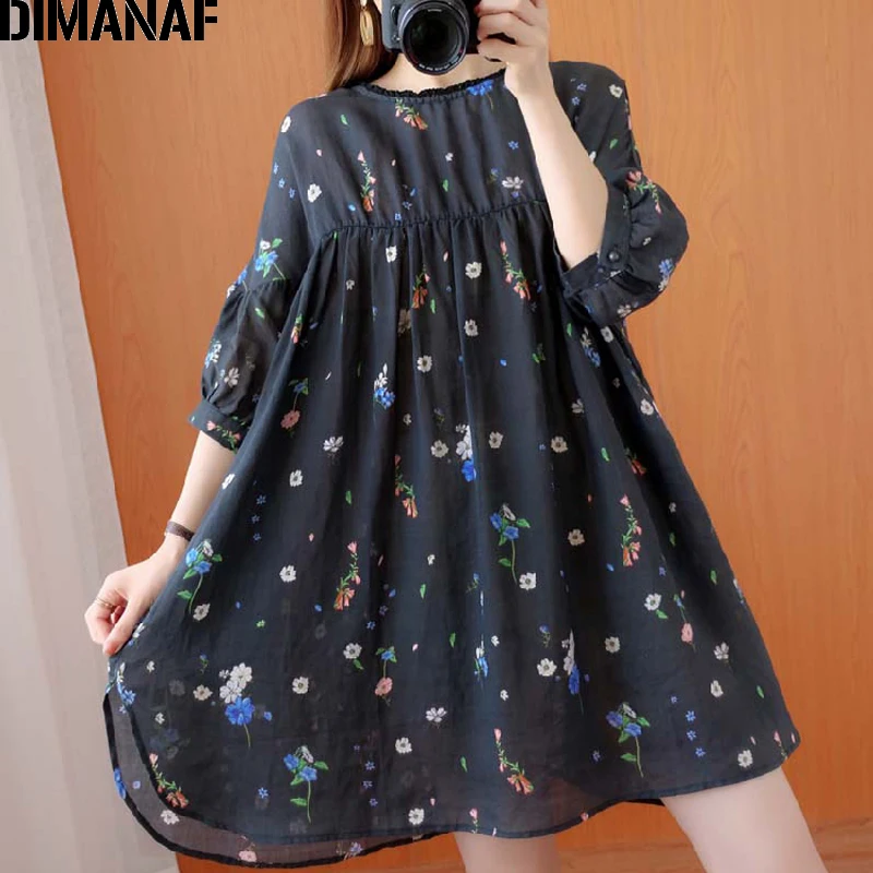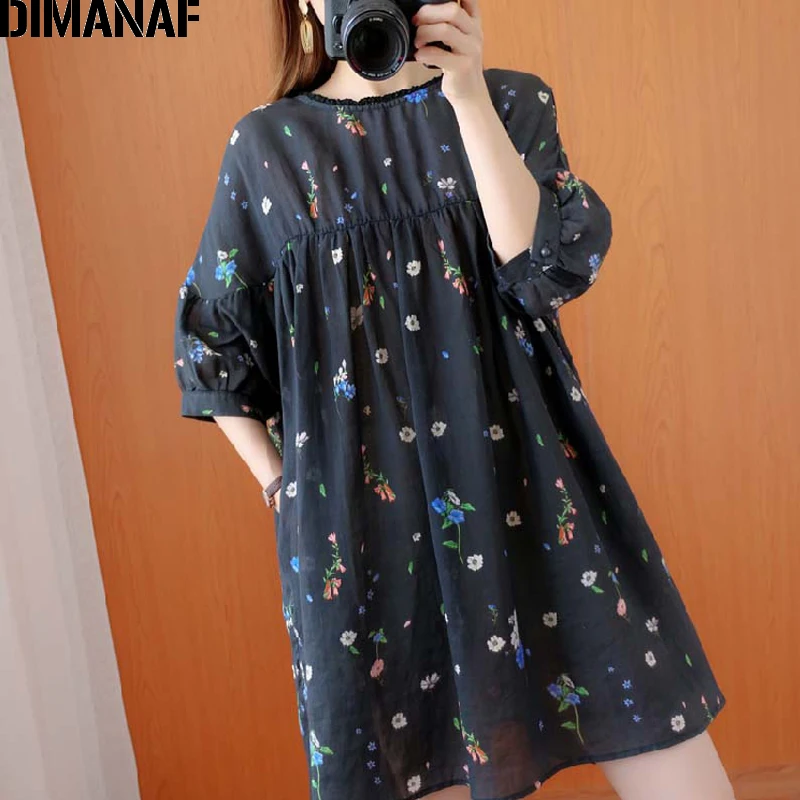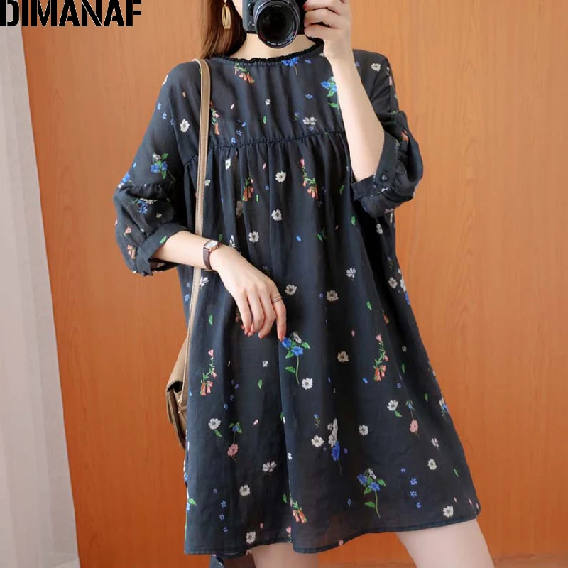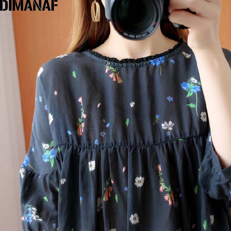 Женская Повседневная Блузка DIMANAF, элегантный хлопковый топ-туника с цветочным принтом, свободная плиссированная блузка в стиле оверсайз на осень