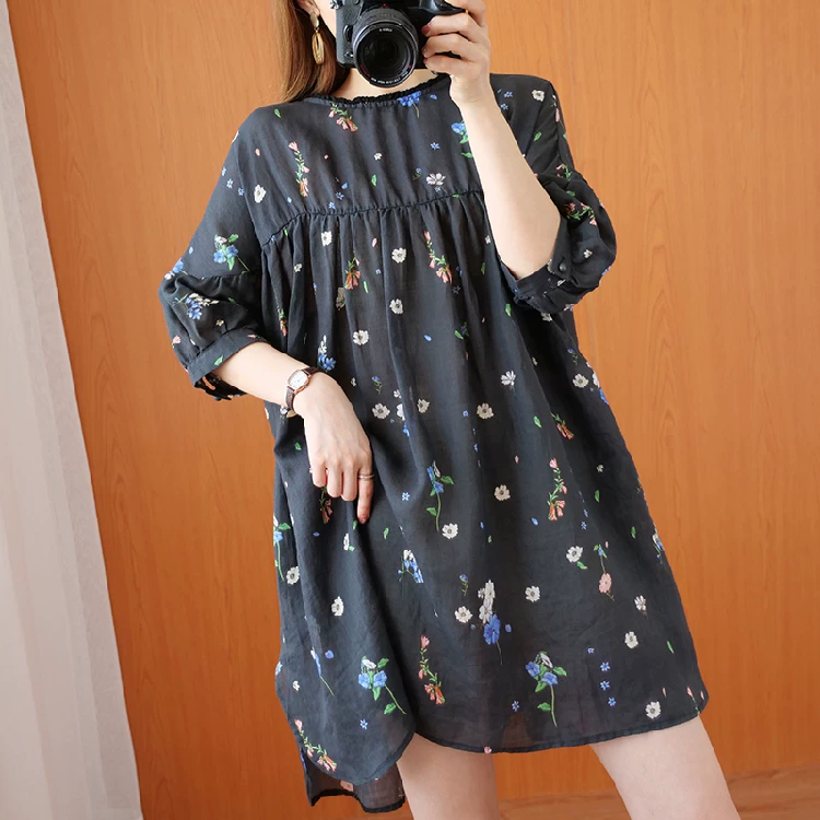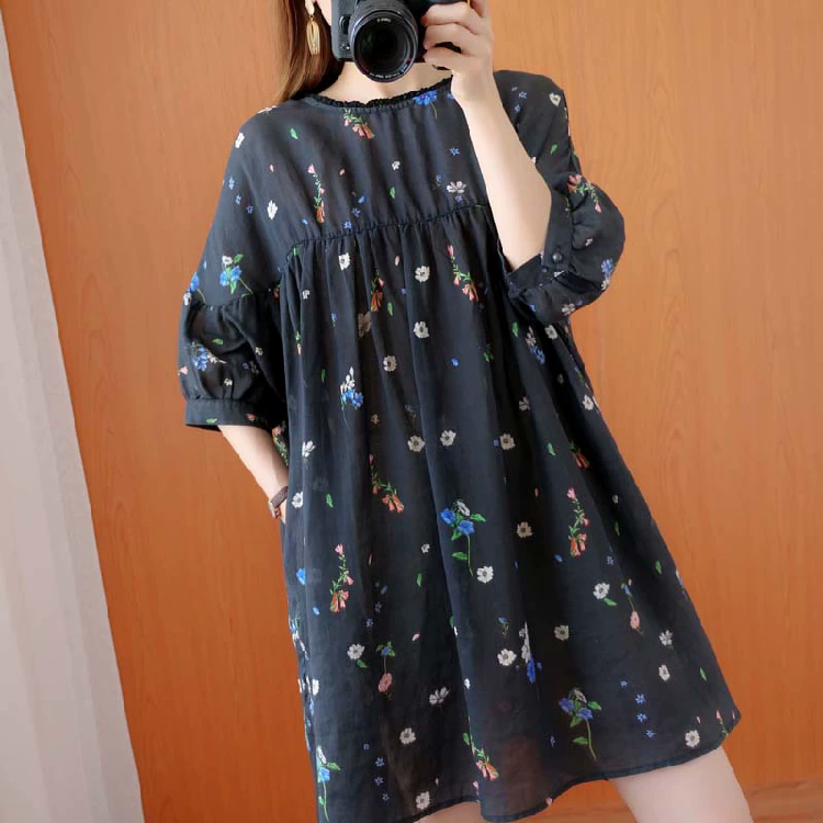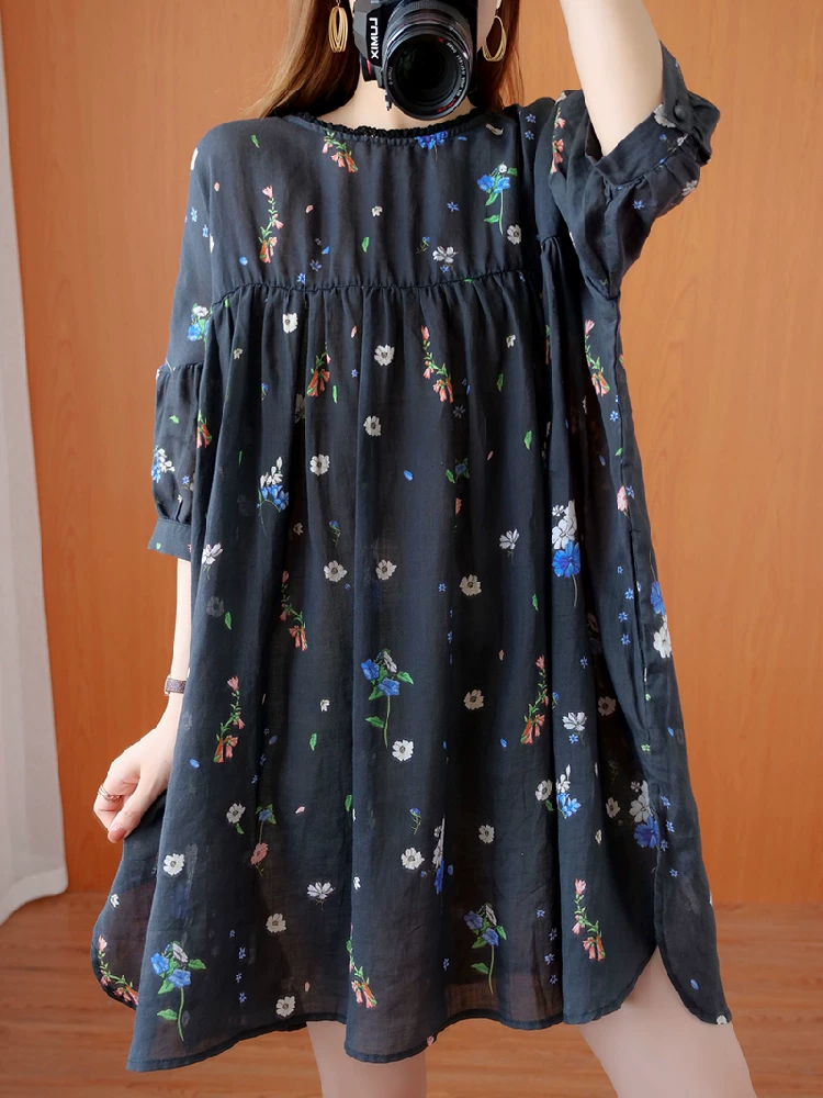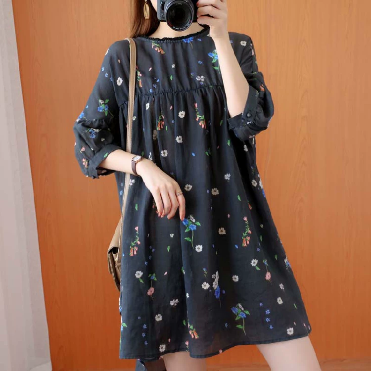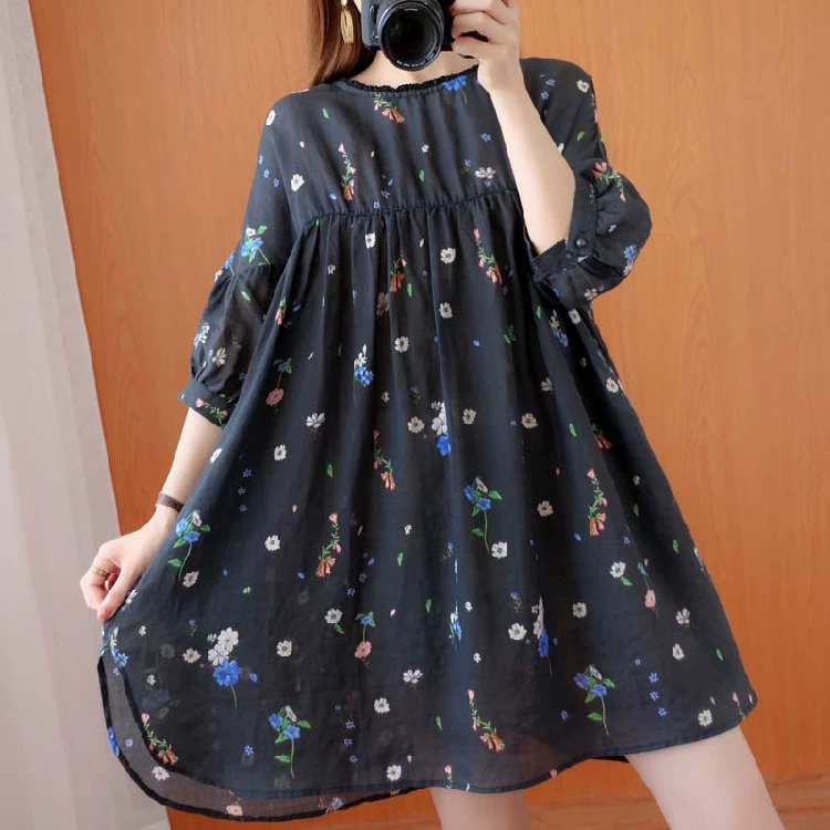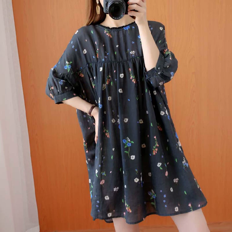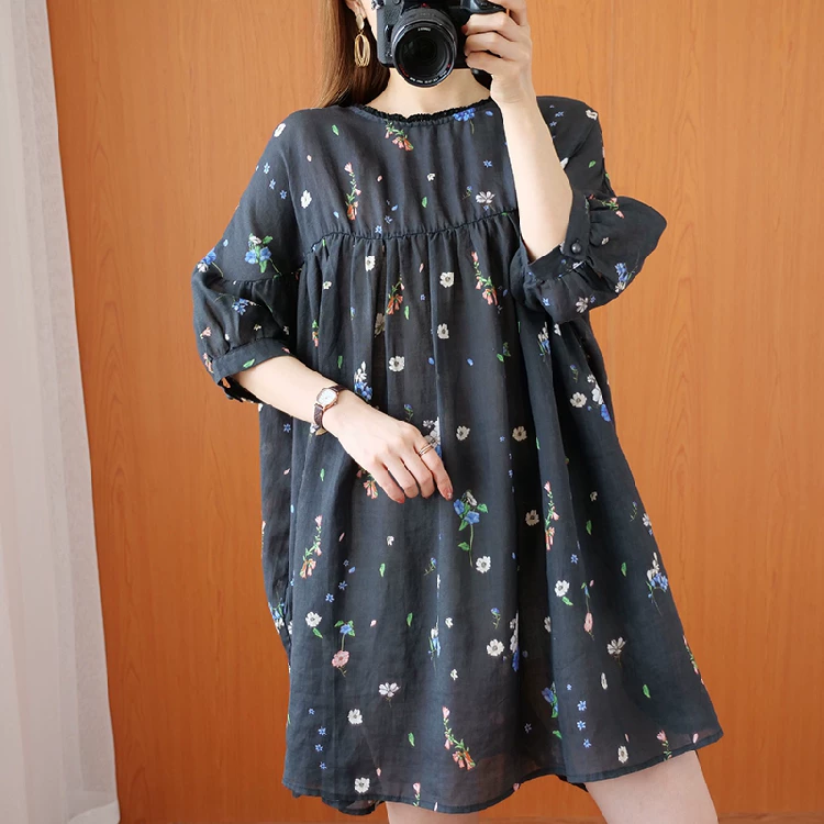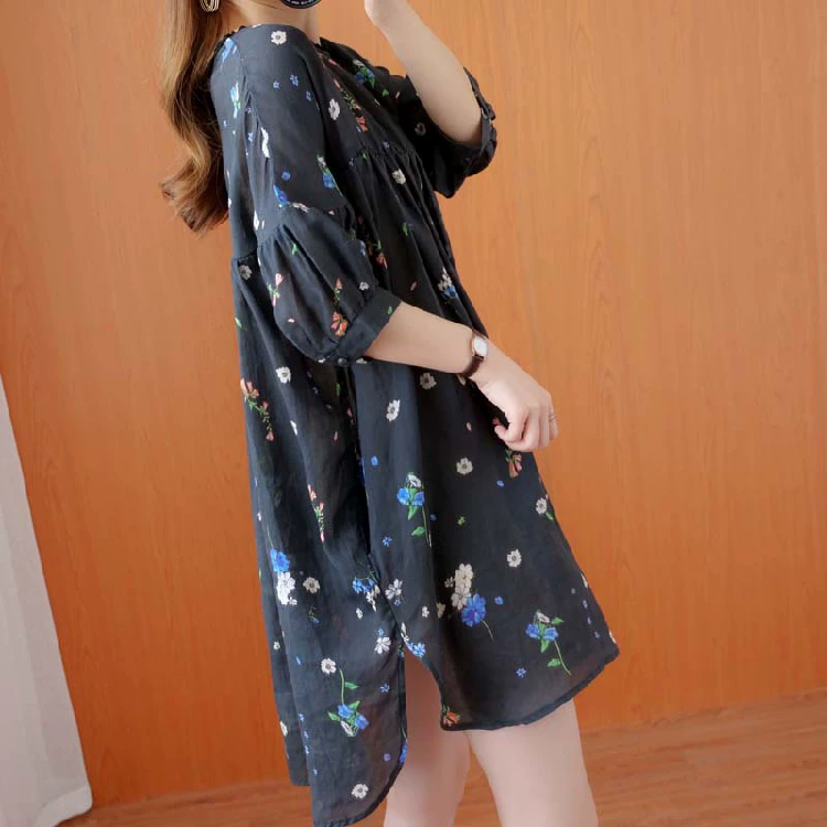 Женская Повседневная Блузка DIMANAF, элегантный хлопковый топ-туника с цветочным принтом, свободная плиссированная блузка в стиле оверсайз на осень