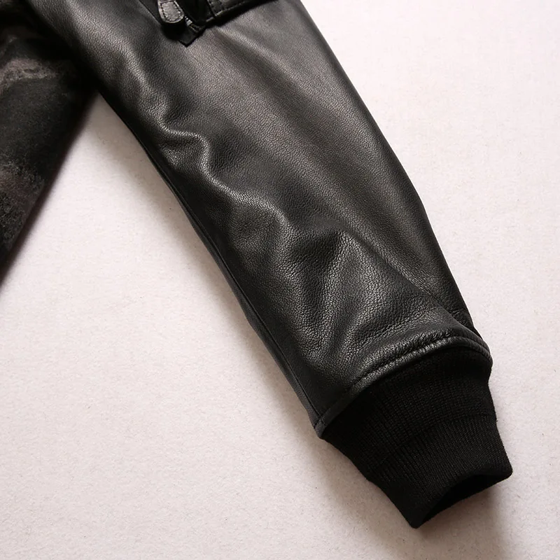 Мужская куртка из натуральной овечьей кожи, теплая куртка-бомбер бо...