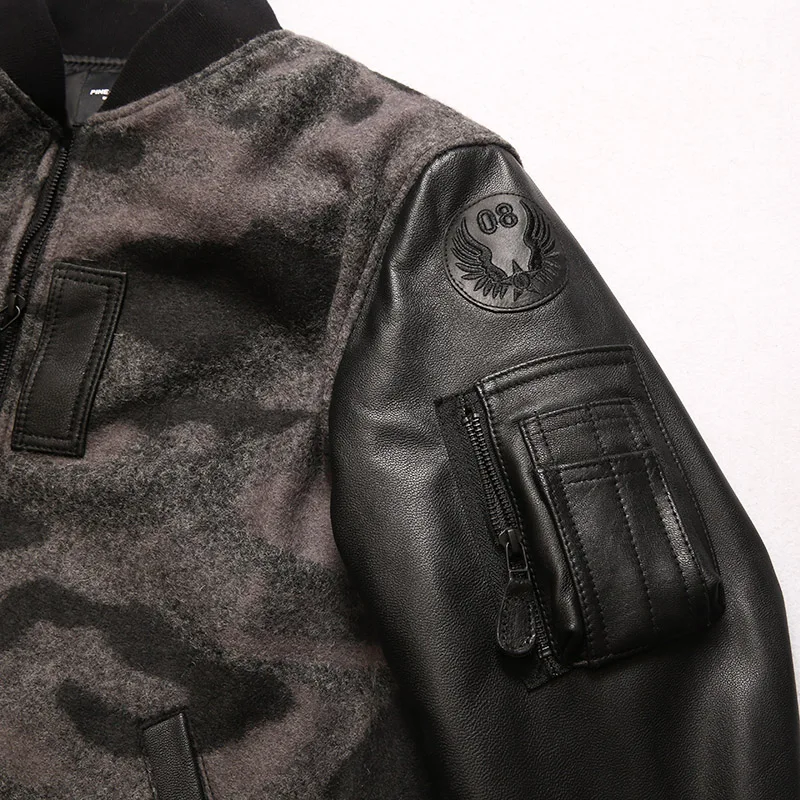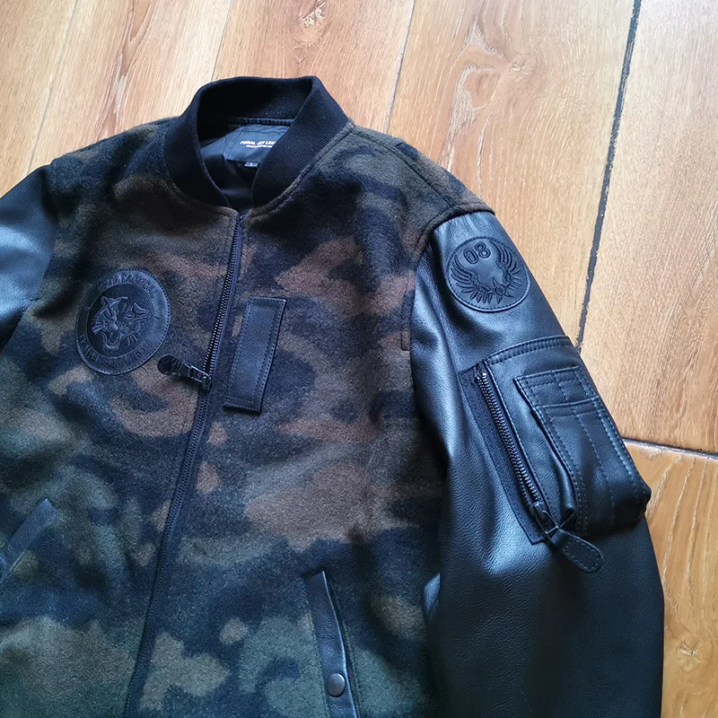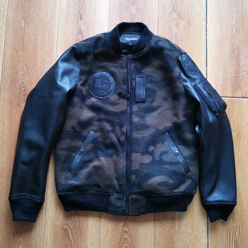 Супер предложение 300! Мужская камуфляжная куртка из натуральной овечьей шкуры с рукавами