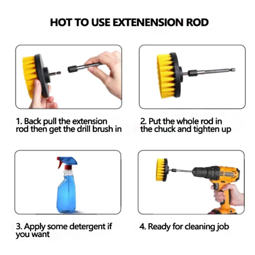 Набор насадок для дрели, универсальные щетки для чистки, удлиненные...