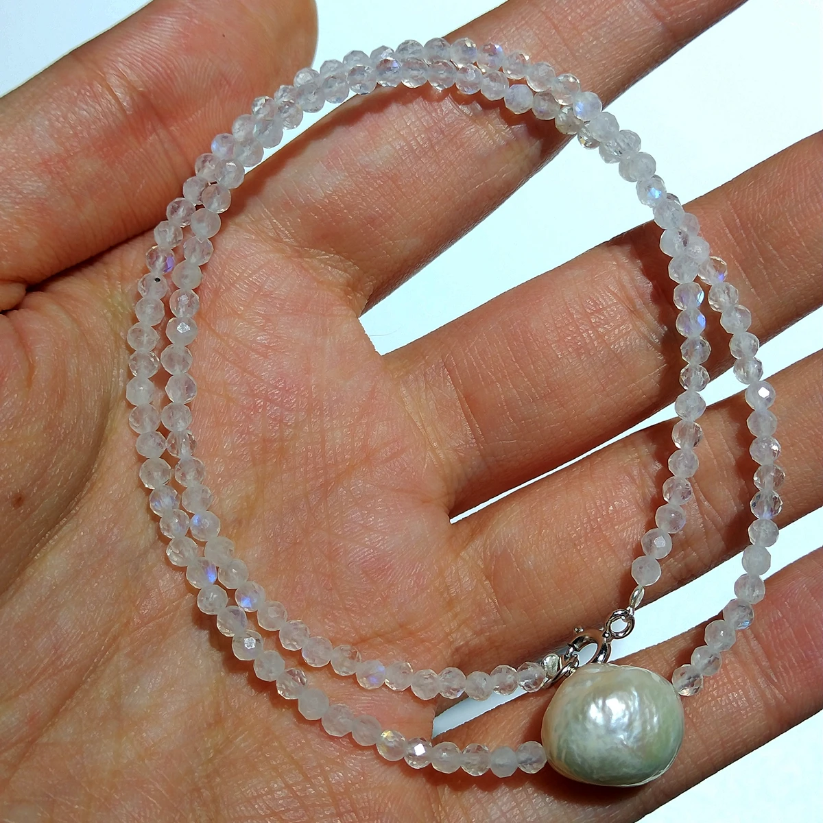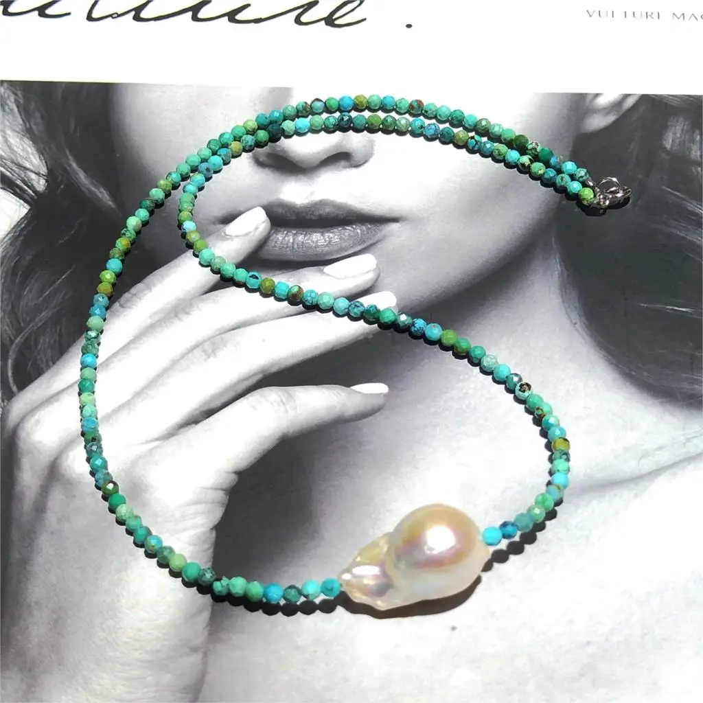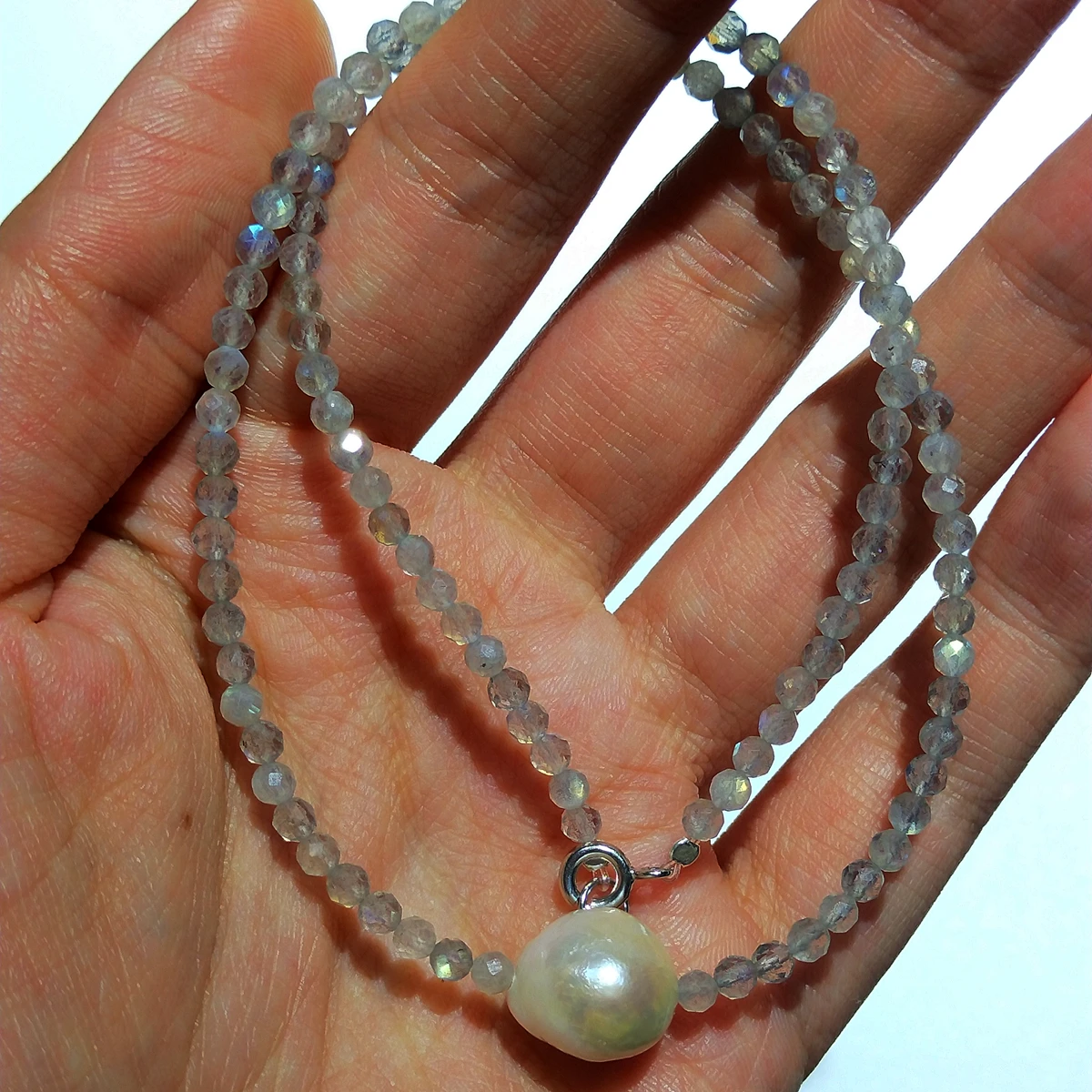 Ожерелье-чокер Lii Ji, настоящая бирюза, лабрадорит, лунный камень, барокко, жемчуг, богемное ожерелье, 925 пробы, серебро, женские украшения