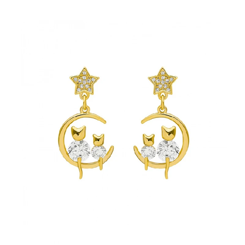 Женские серьги-гвоздики с кристаллами, серьги в форме кота, Луны, п...