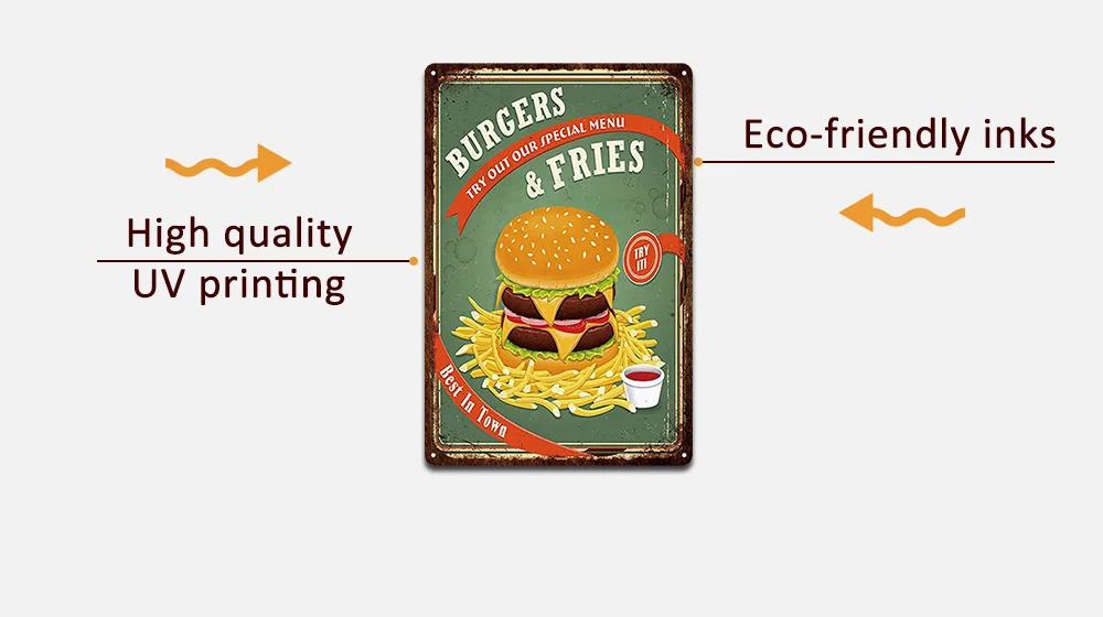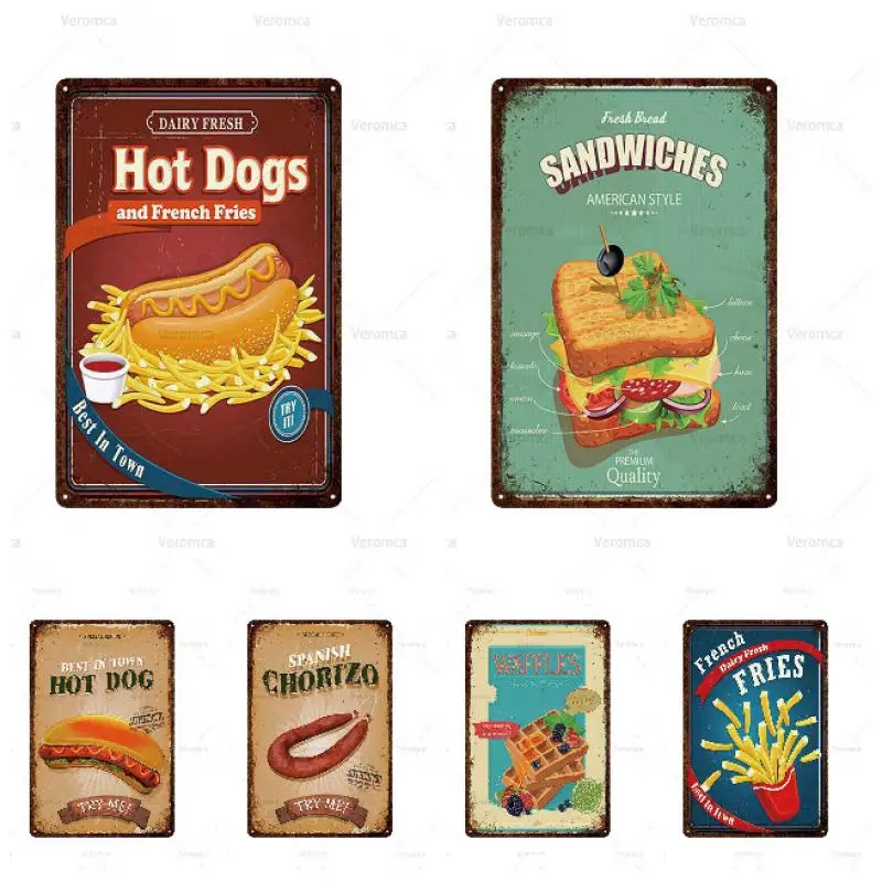 Металлический знак в виде гамбургера, металлический винтажный жестяной знак для фаст-фуда, Настенный декор для кухни, кафе, столовой, бара, гамбургеров, металлические знаки