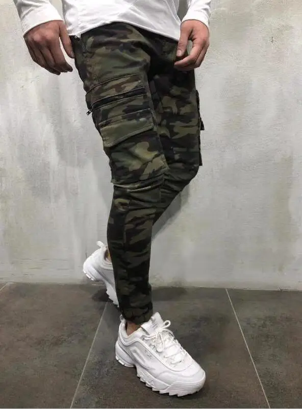 Мужские камуфляжные уличные джинсы с принтом, облегающие Стрейчевые прямые джинсы, модные мужские хлопковые джоггеры, повседневные джинсовые брюки-карандаш