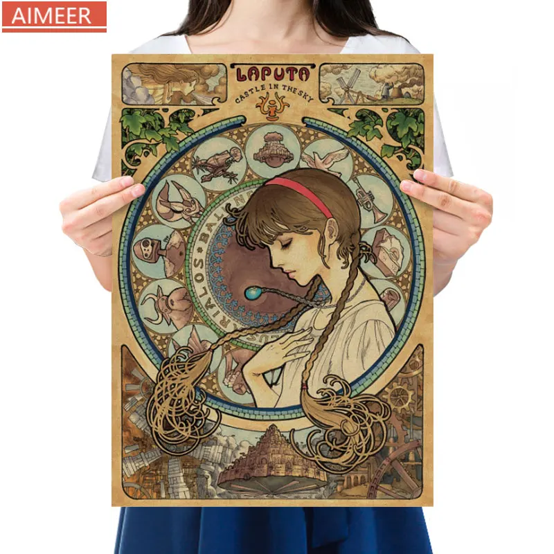 Постер AIMEER Hayao Miyazaki из аниме Небесный город, ностальгическая винтажная крафт-бумага, стикер на стену, 36*51 см