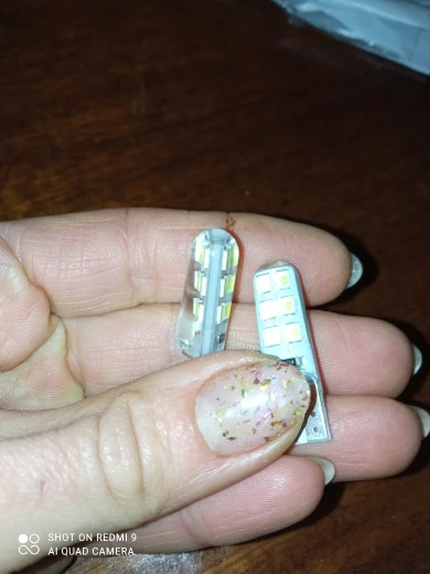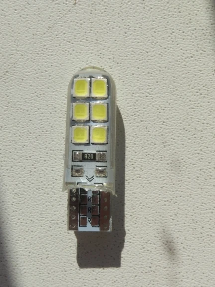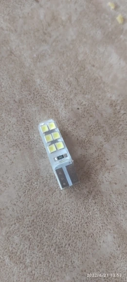 Субъективно 6500K. Очень яркая. Синевы практически нет. Силикон прозрачный, как слеза))), залит не очень симметрично, но свою функцию защиты от влаги выполняет. В остальном качество исполнения очень хорошее. В патрон вставляется плотно. Два токоограничительных резистора по 82 Ом (на фотках в описании 75 Ом, а в отзывах видел и 150 Ом, и 143 Ом) очень порадовали, так как при напряжении в бортовой сети 14.0-14,5V через каждый светодиод максимальный ток будет 33 mA при падении напряжения 3.03V, и в целом лампочка будет работать максимум на 1,9W. Это даёт надежду на долгую жизнь светодиодов без стабилизатора на 12 Вольт. Обманки (резисторов 240 Ом) нет, но мне и не надо, в моем авто проверки нитей накала нет. Если у кого бортовой комп будет ругаться, то резисторы обманки впаять можно без проблем, есть восемь посадочных мест. В общем, мне эта лампочка очень понравились, теперь жду вторую и буду ставить на авто. К покупке рекомендую. Спасибо продавцу!