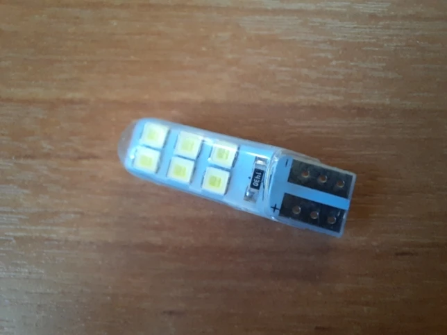 Лампа для автомобиля W5W 360 градусов магазин Comebuybest Store 12 светодиодов SMD 2835 Цветовая температура: Белый Цоколь лампы: T10 (E5W) Напряжение: 12 Вольт Мощность: 2 Вт На лампочке нанесены отметки плюс и минус Корпус покрыт прозрачным силиконом Доставка около месяца из Китая в Россию Почтой частично отслеживаемая Saver Shipping Упаковано в серый пакет с пузырчатой пленкой и завернуто пузырчатой пленкой в несколько слоев