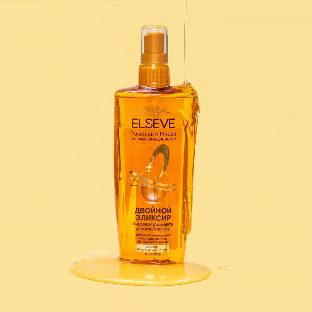 Питательный экспресс-кондиционер для волос Двойной Эликсир в своем составе имеет 6 насыщенных микромасел редких экзотических цветов, а также специальную Сыворотку Блеск-Уход двойного действия. Средство мгновенно насыщает волосы полезными элементами по всей длине, придавая им невероятную гладкость и блеск без утяжеления. Оно также существенно облегчает расчесывание и защищает волосы от неблагоприятных факторов окружающей среды.Применение: Хорошо встряхните флакон перед использованием. Распылите спрей на сухие или влажные волосы по всей длине. Экспресс-кондиционер можно повторно применять в течение дня, чтобы освежить волосы. При попадании в глаза промойте их большим количеством воды.Состав: Aqua/water, isododecane, phenyl trimethicone, cyclopentasiloxane, ci 19140/yellow 5, ci 14700/red 4, chamomilla recutita extract/matricaria flower extract, cocos nucifera oil/coconut oil, tocopherol, phenoxyethanol, ethylhexyl methoxycinnamate, chlorphenesin, helianthus annuus seed oil/sunflower seed oil, nelumbium speciosum flower extract, dimethiconol, benzyl alcohol, cinnamal, linalool, linum usitatissimum flower extract/linseed flower extract, caprylic/capric triglyceride, caramel, gardenia tahitensis flower extract, rosa canina flower extract, bisabolol, bht, citric acid, glycine soja oil/soybean oil, parfum/fragrance.