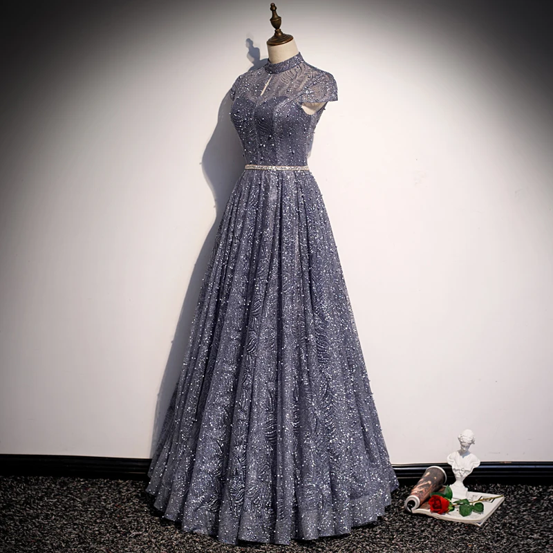 Женское вечернее платье до пола, ТРАПЕЦИЕВИДНОЕ ПЛАТЬЕ с высокой горловиной, вышивкой бисером и жемчугом, размера плюс, R1346