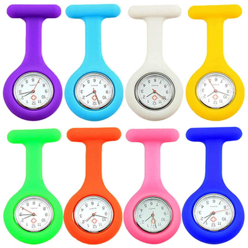 Новые однотонные Милые силиконовые аналоговые цифровые часы с клипсой высокого качества Брошь для медсестер карманные часы с кварцевым механизмом