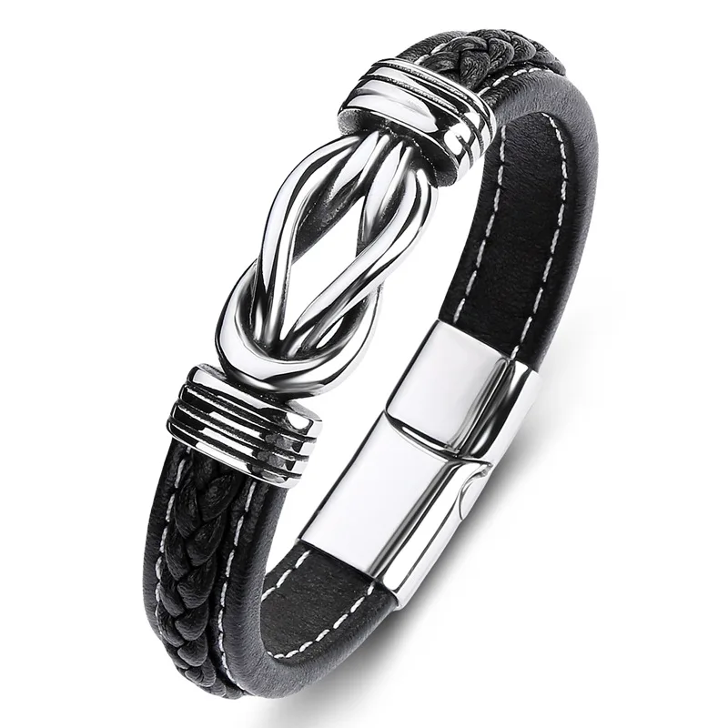 XiongHang, хит продаж, черный Панк, 8, нержавеющая сталь, натуральная кожа, плетеные мужские браслеты, подарочные браслеты для влюбленных, Pulseras Hombre