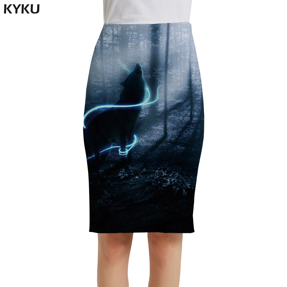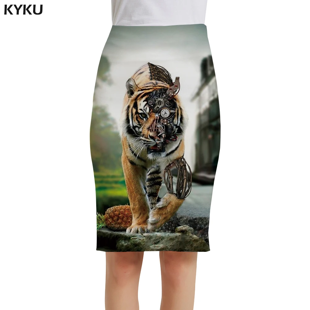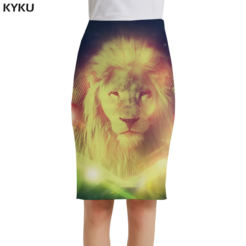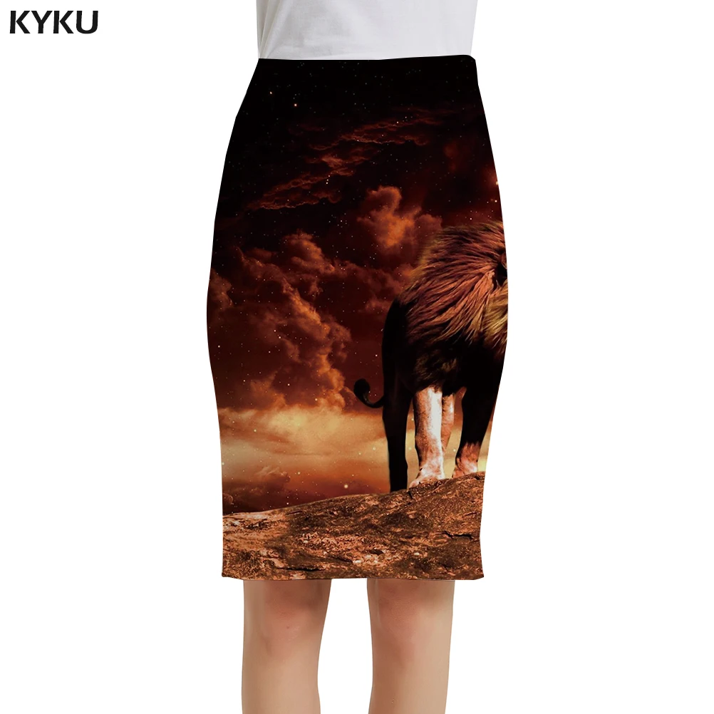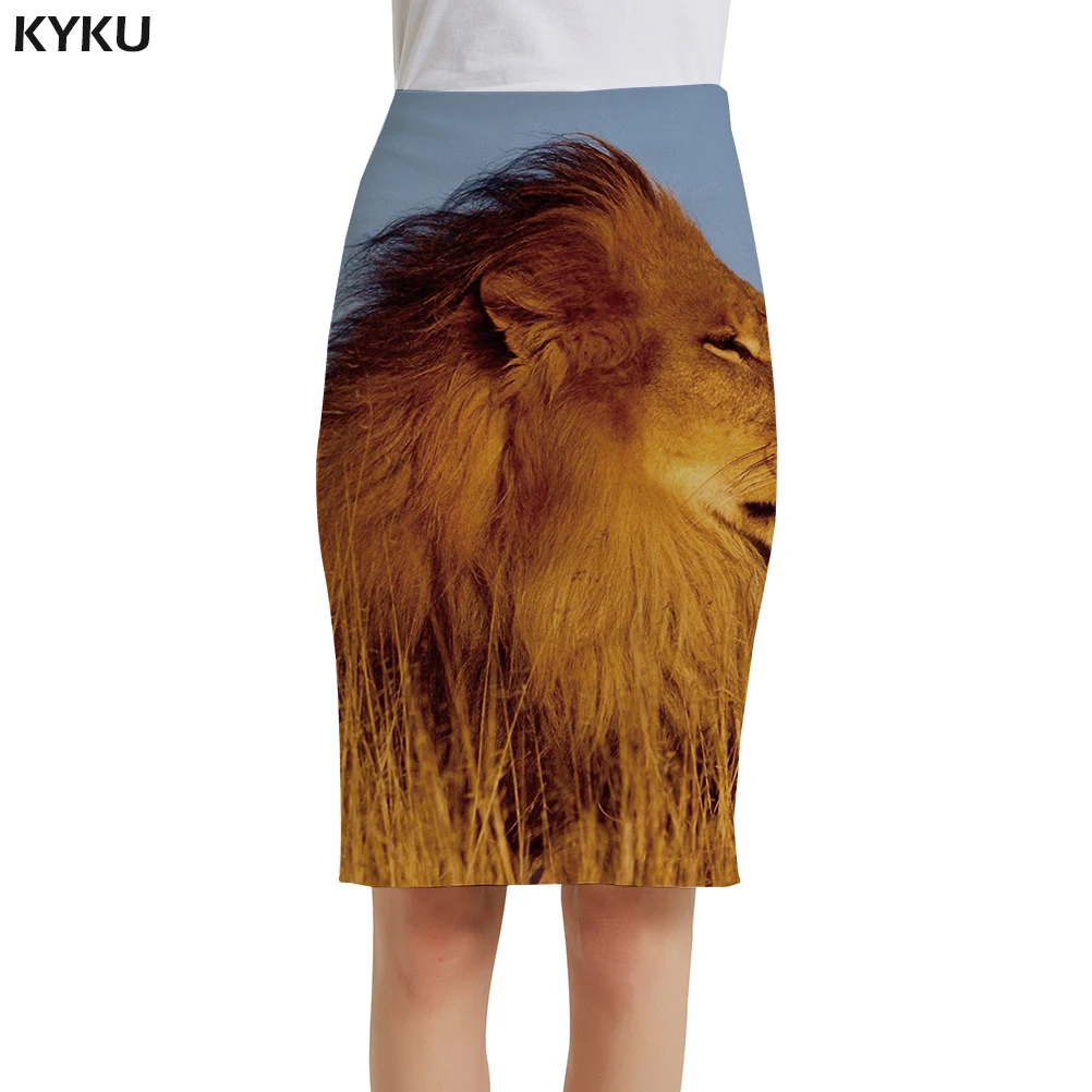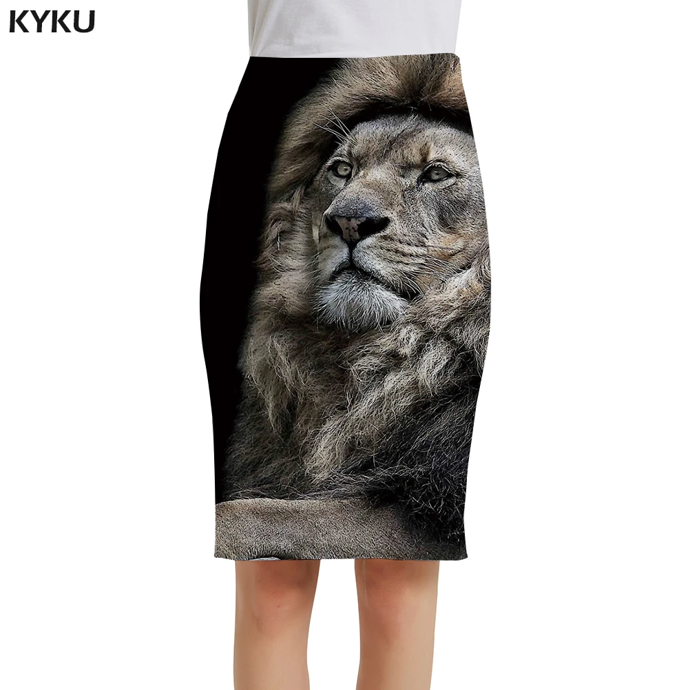 Женские винтажные юбки-карандаш KYKU, серые повседневные праздничные юбки с 3D-принтом льва, лето 2019