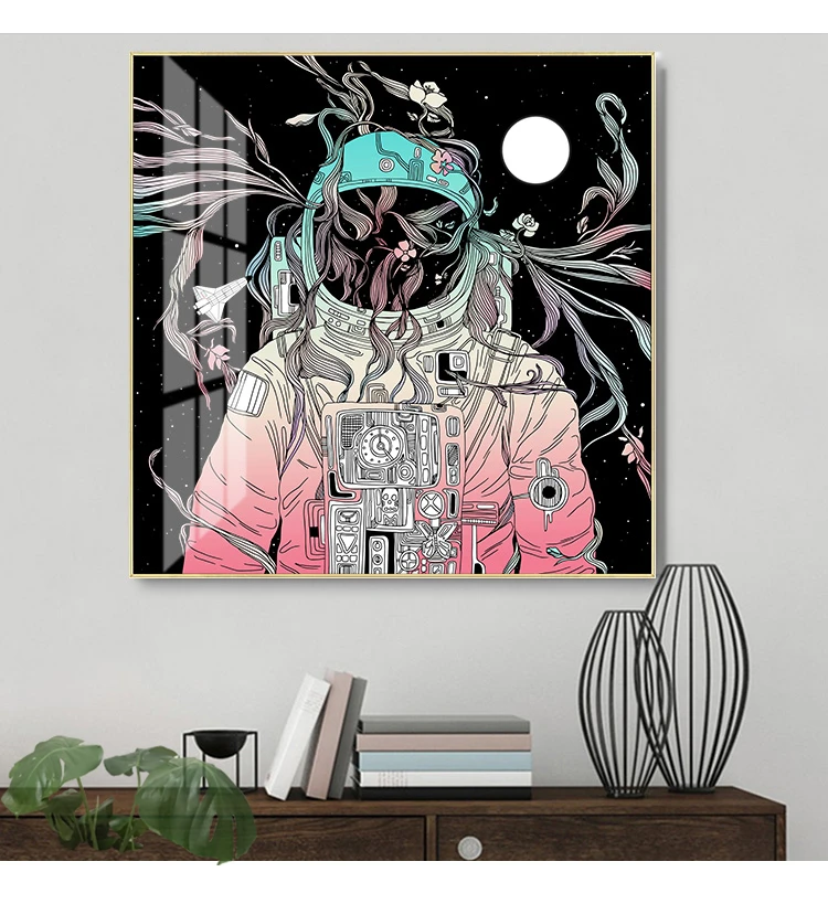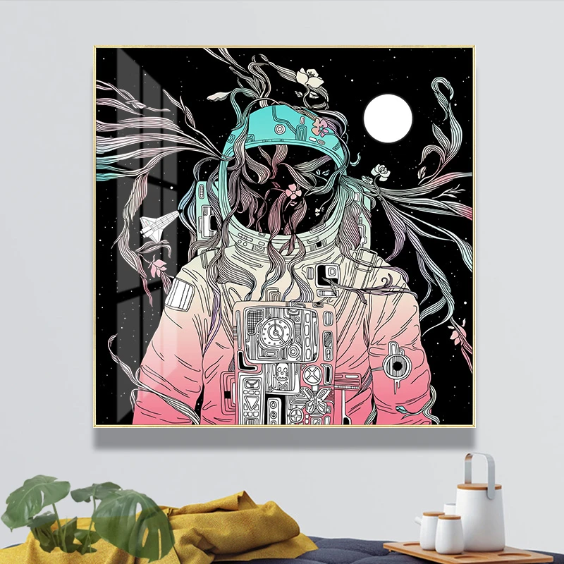 Настенная картина в скандинавском стиле, современное искусство на холсте с изображением астронавта, космоса, скандинавские постеры и принты для гостиной, домашний декор