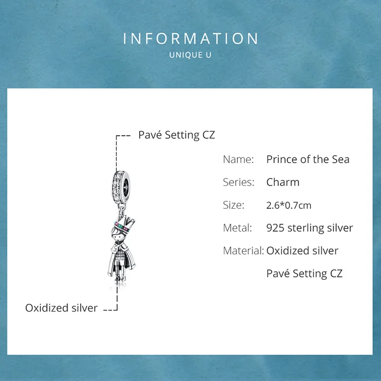 Оригинал, 100% Стерлинговое Серебро 925 пробы, подвеска принца моря, очаровательный браслет, бусы, сделай сам, Женский Бренд, ювелирное изделие, свадебный подарок