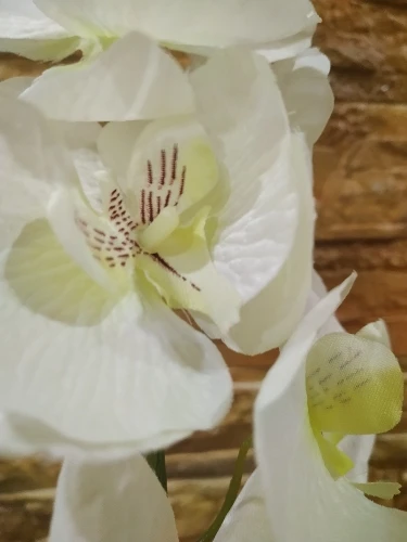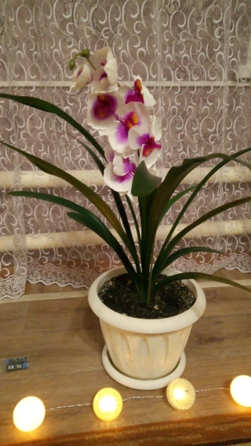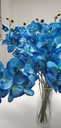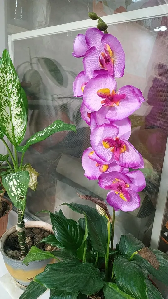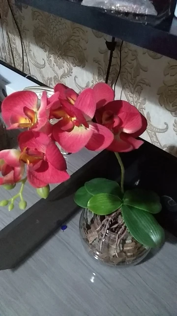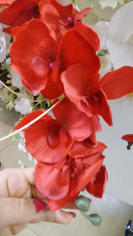 Орхидеи шикарные-крупные,цветочки изящные, легкие, с прожилочками, цвет яркий, прочто чудо!!!У меня орхидеи живые, пока не цветут буду оформлять искуственными, подобрала по цвету. Я в восторге! На фото против света, цвет немного не тот, но все как на фото- супер!