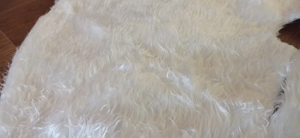 мех не пушистый, а как слегка засмальцованй, эффект такой, но белоснежный и красивый все равно я довольна