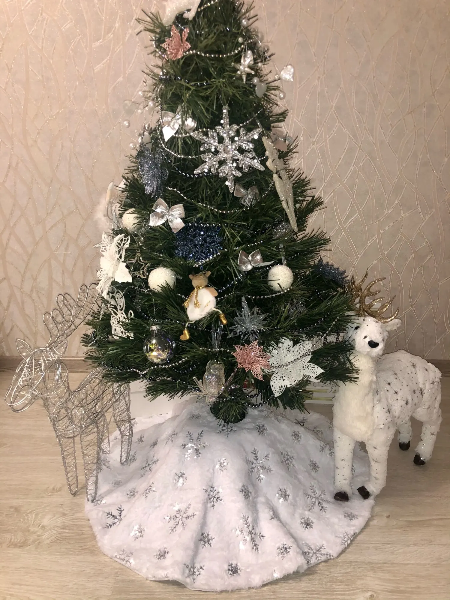 Прекрасный коврик под ёлку. Берите максимальный размер, тогда смотреться будет ещё круче.
