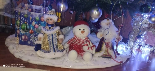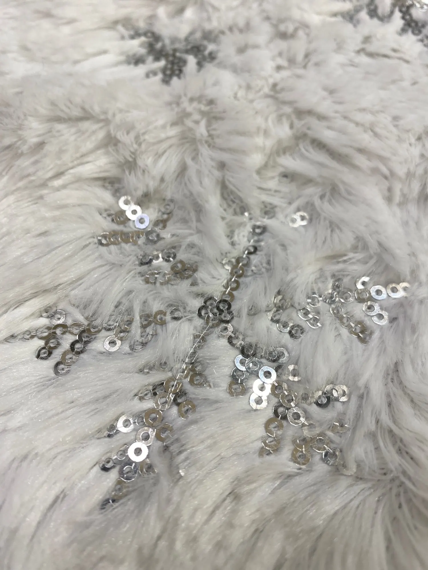 Нам коврик очень понравился. Снежинки из мелких пайеток сделаны. Но надо было все же брать пушистый... товар отличный, но дороговат..