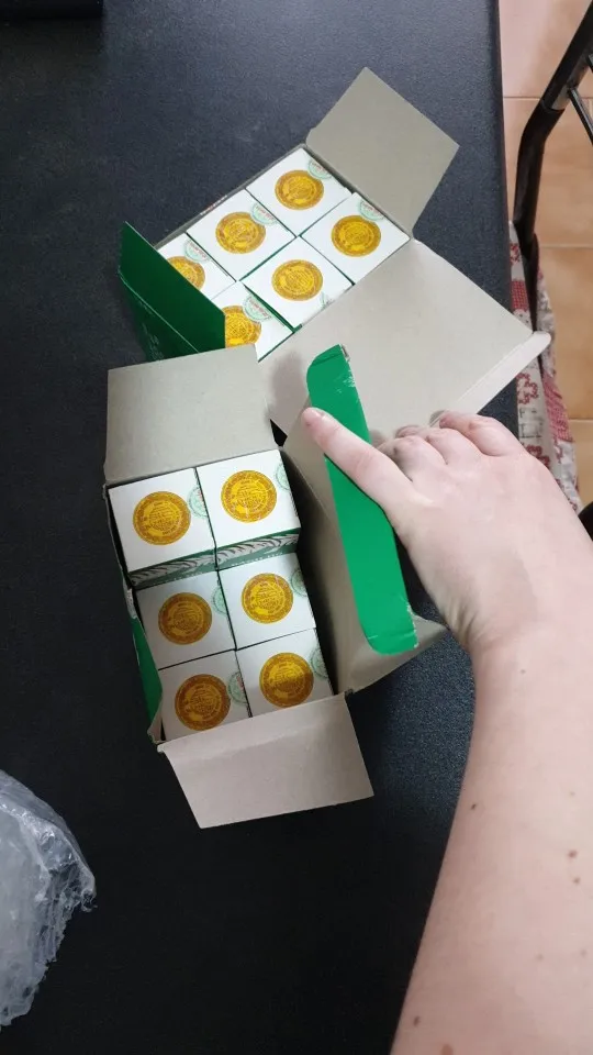 Если сравнивать с оригиналом из Вьетнама, то отличается дизайн немного и чуть меньше размер, чем у оригинального. Качеством не уступает, помогает и прогревает также. Очень нравится пряный запах трав, если использовать на ночь, то и сон улучшает и деткам использовать можно на запястья. Срок годности на коробке до 2023.