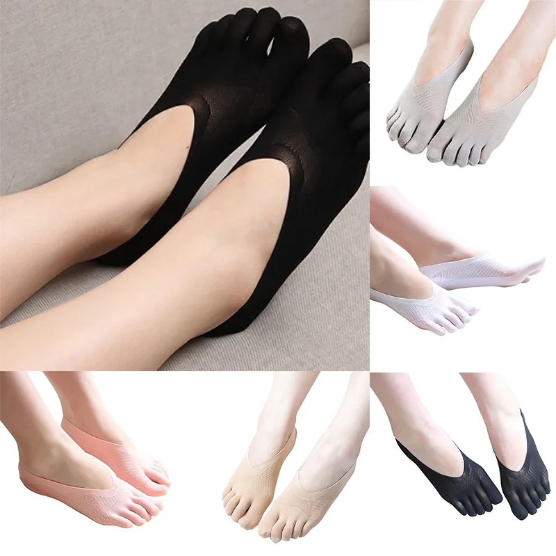 Женские носки с пятью пальцами, однотонные Нескользящие невидимые н...