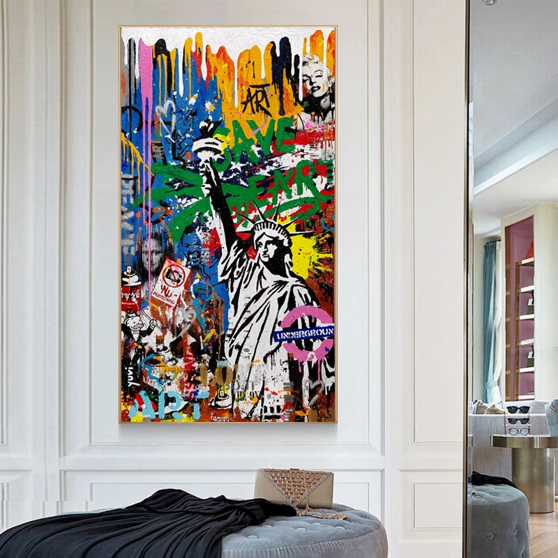 Статуя Свободы граффити искусство холст живопись абстрактные постеры и принты уличная Настенная картина для гостиной домашний декор
