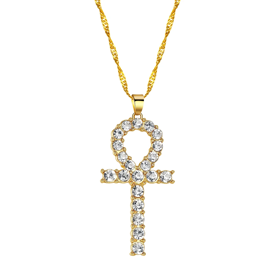 Мужское и женское ожерелье с крестом на ногу, винтажное ожерелье с золотистыми кристаллами в стиле панк, с распятием, в стиле древнего ретро, египетское ожерелье