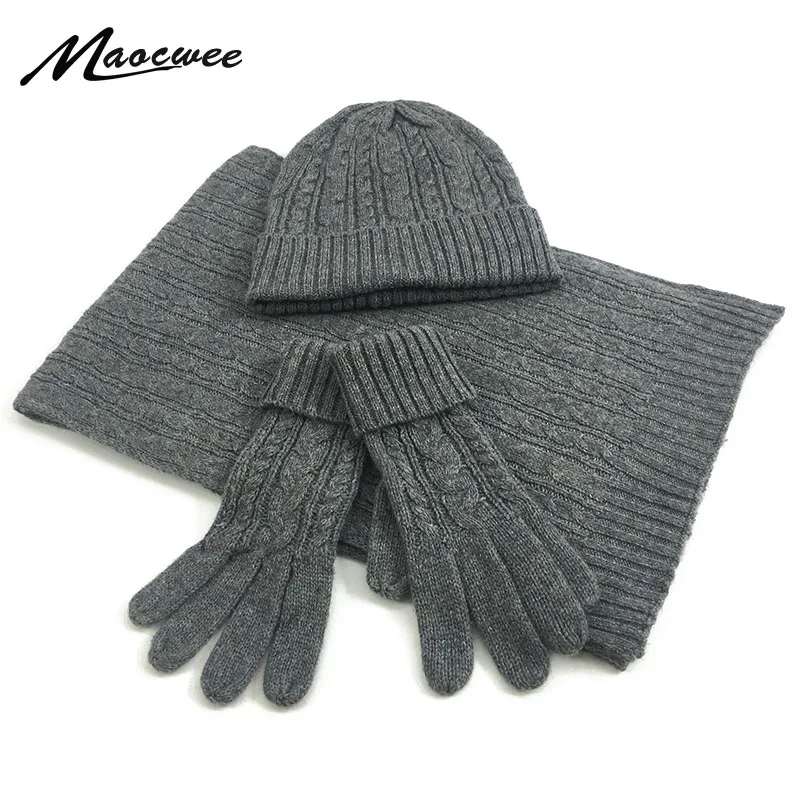 Зимний семейный набор для женщин и мужчин, трикотажная женская шапка для улицы, женские шапочки, шапка, шарф, набор из 3 предметов