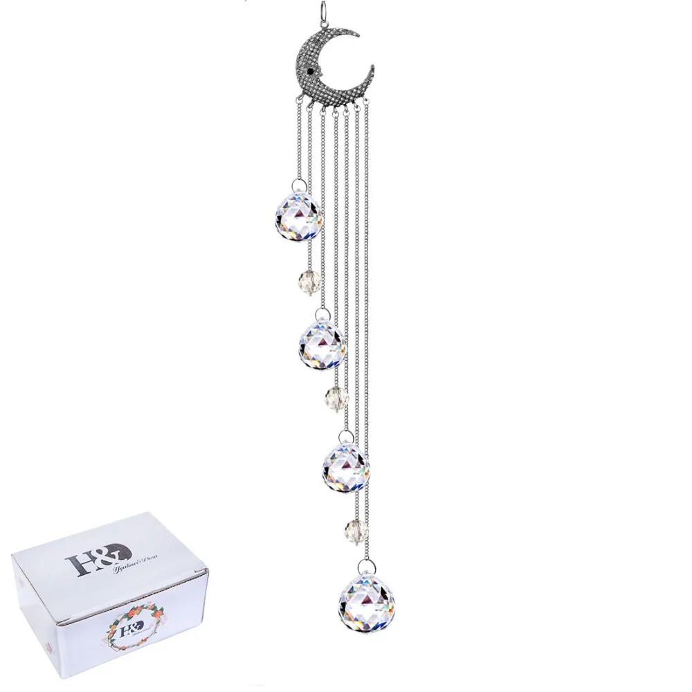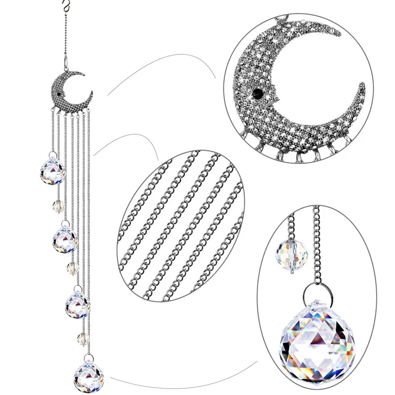 Кулон в виде полумесяца и кристаллов: украшение для окна состоит из 4 прозрачных хрустальных шариков и орнамента в виде полумесяца, это сочетание является креативным и деликатным, обеспечивая вам различную визуальную привлекательность