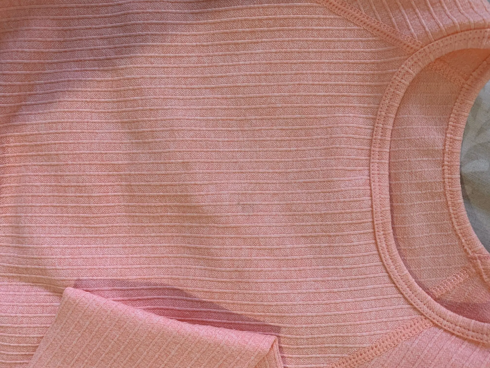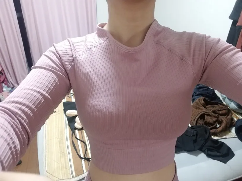 Костюм очень классный. По размеру подошел на 87/58/89. Достаточно плотный, но хорошо тянется. Ткань приятная. Доставка за 24 дня. Цвет отличается от картинки. В живую он сиреневый, а не розовый, но в принципе красивый цвет. Жаль, что все таки цвет не соответствует, так как заказывала под кроссовки. Носить буду.