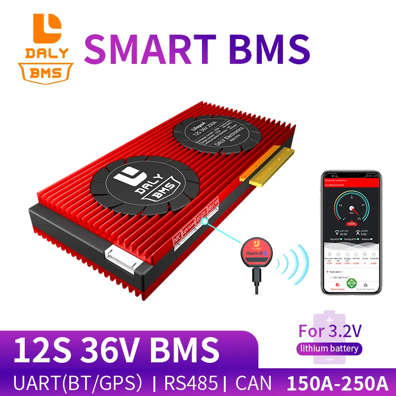 Daly 18650 smart BMS 12S 36V 150A 200A 250A Bluetooth 485 для USB-устройства CAN NTC UART программное обеспечение, литий-ионная батарея, защитная плата BMS