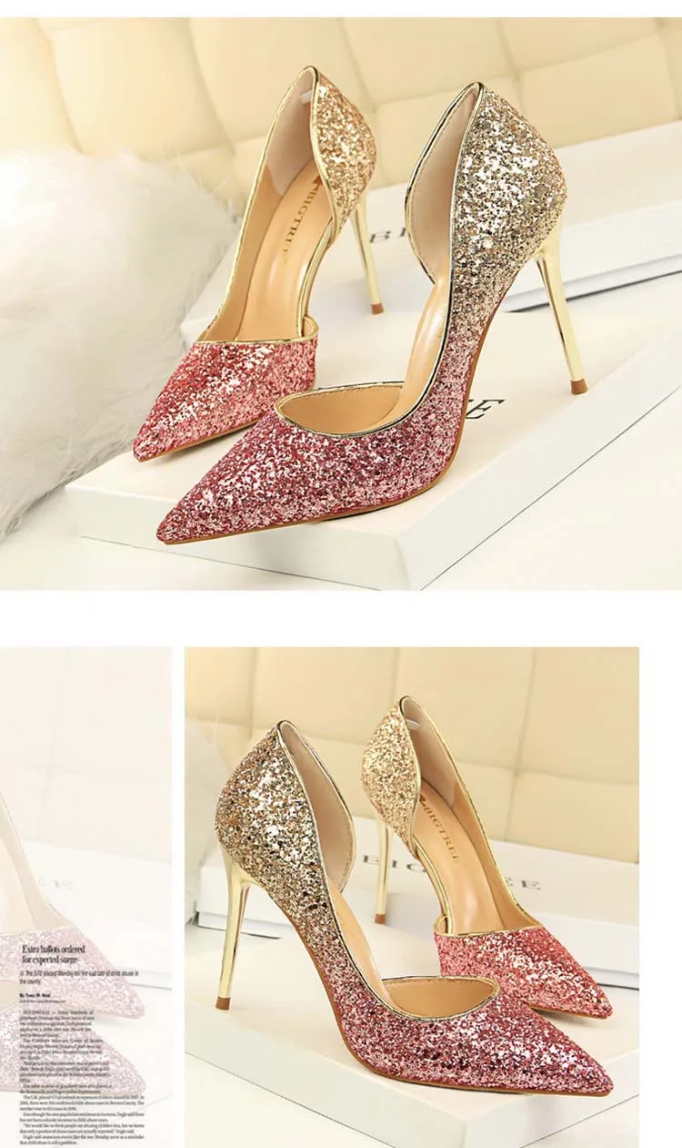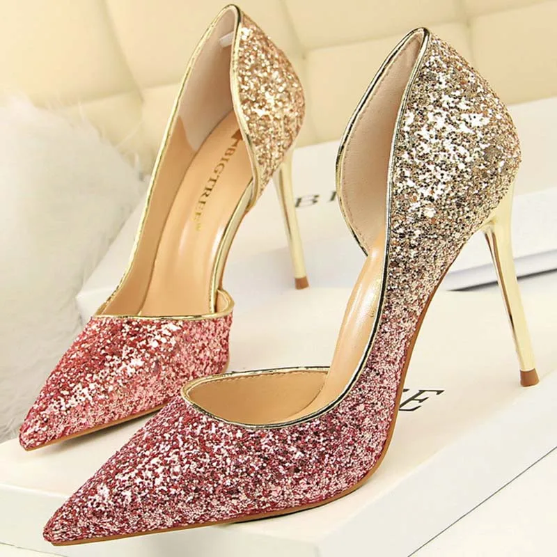 Женские свадебные туфли-лодочки, модные женские туфли на высоком каблуке для девушек, яркие вечерние туфли-лодочки с блестками, красивая женская обувь для улицы