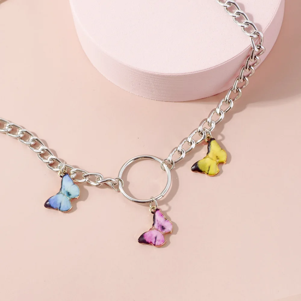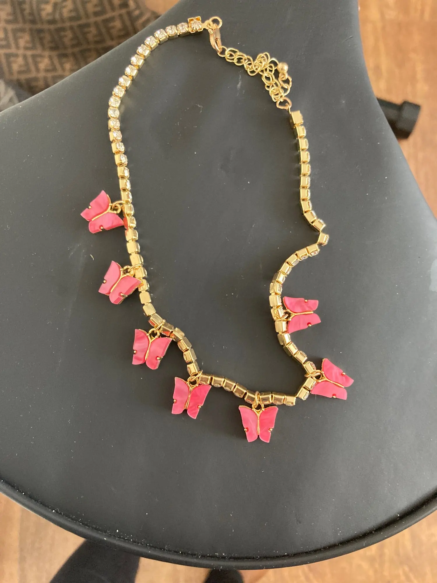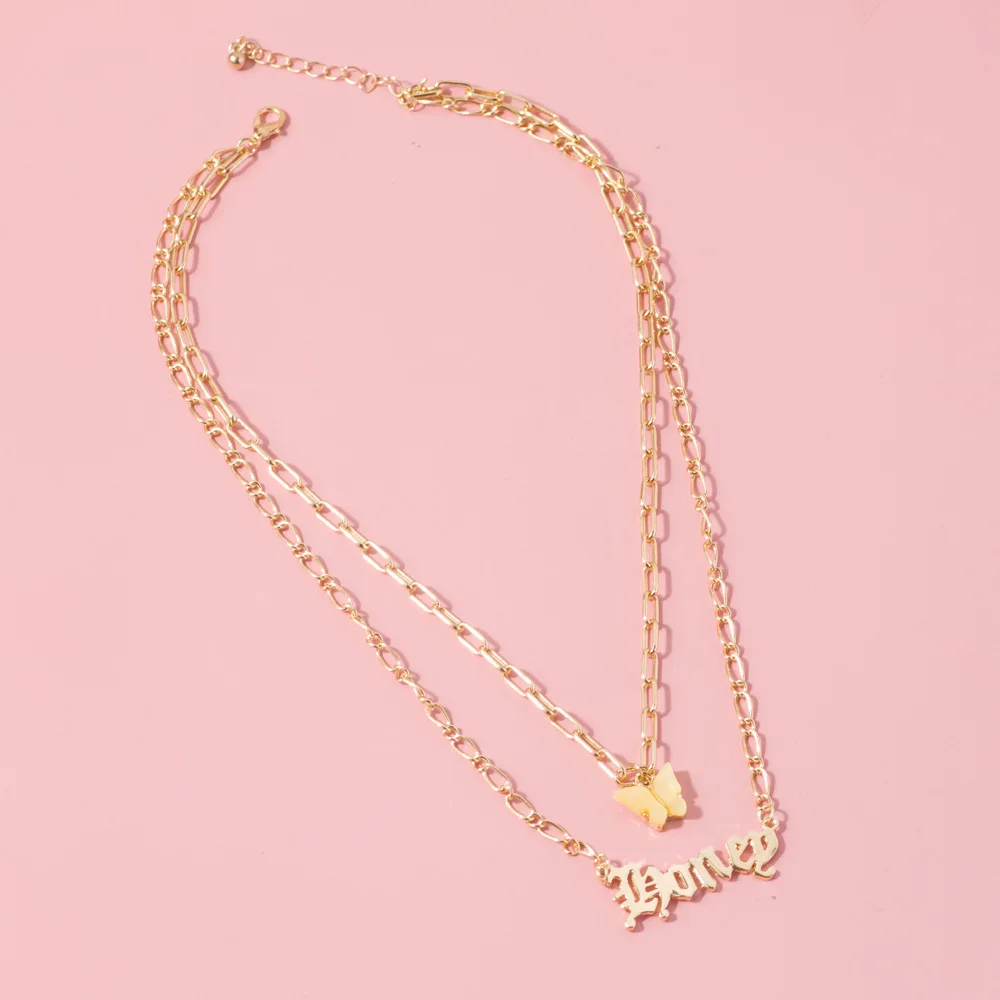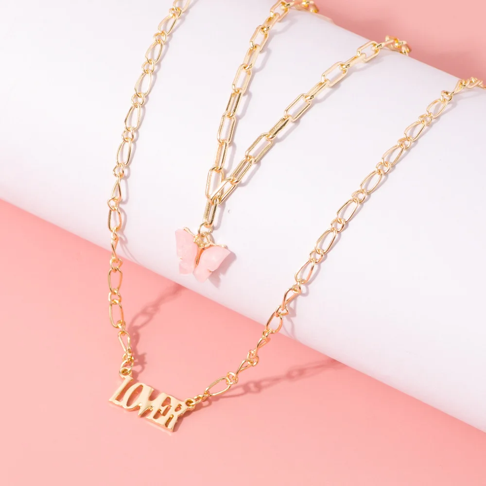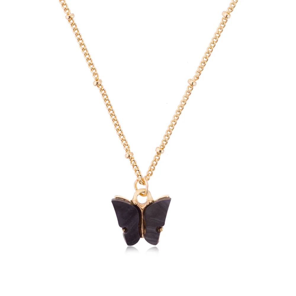 Двухслойное акриловое ожерелье с подвеской в виде бабочки