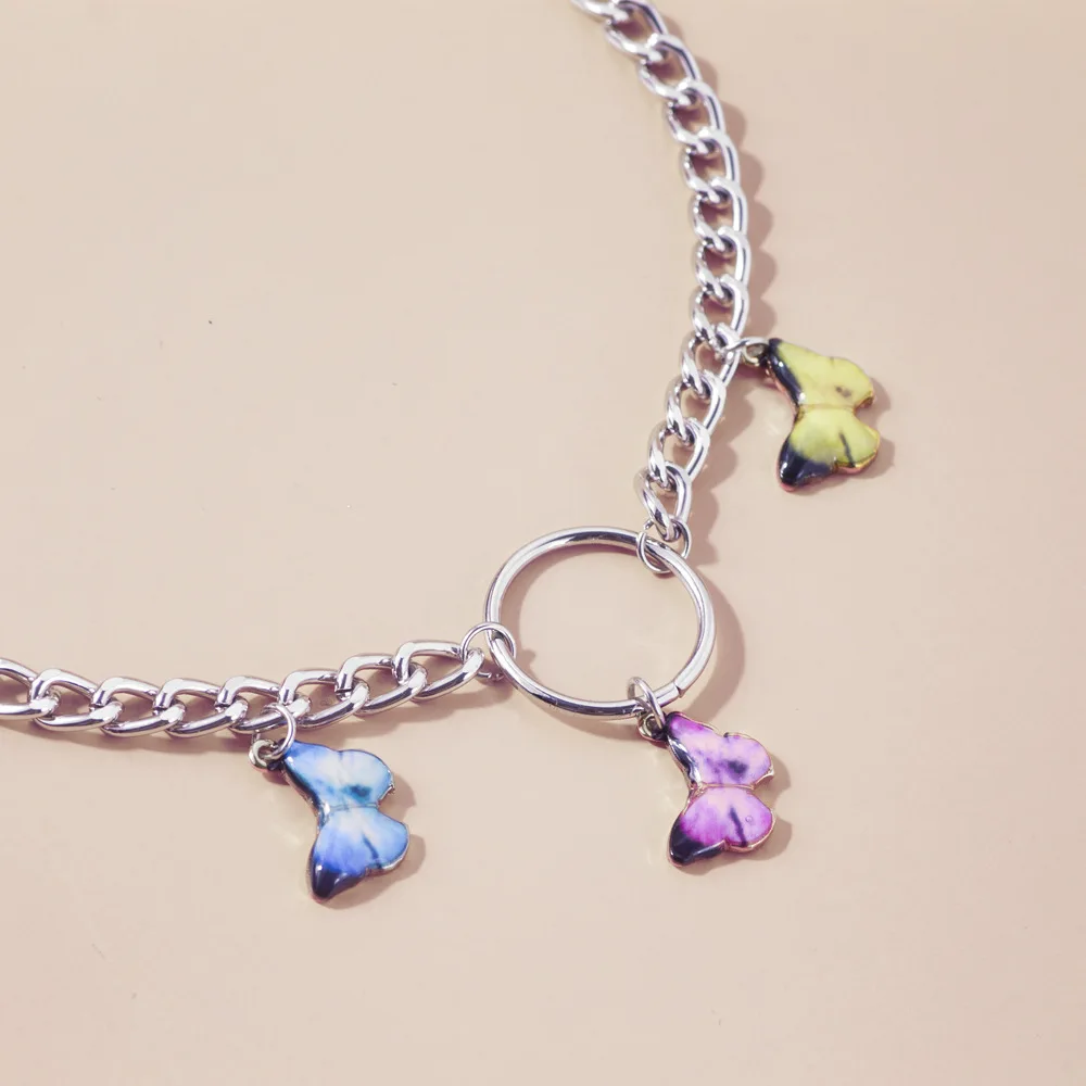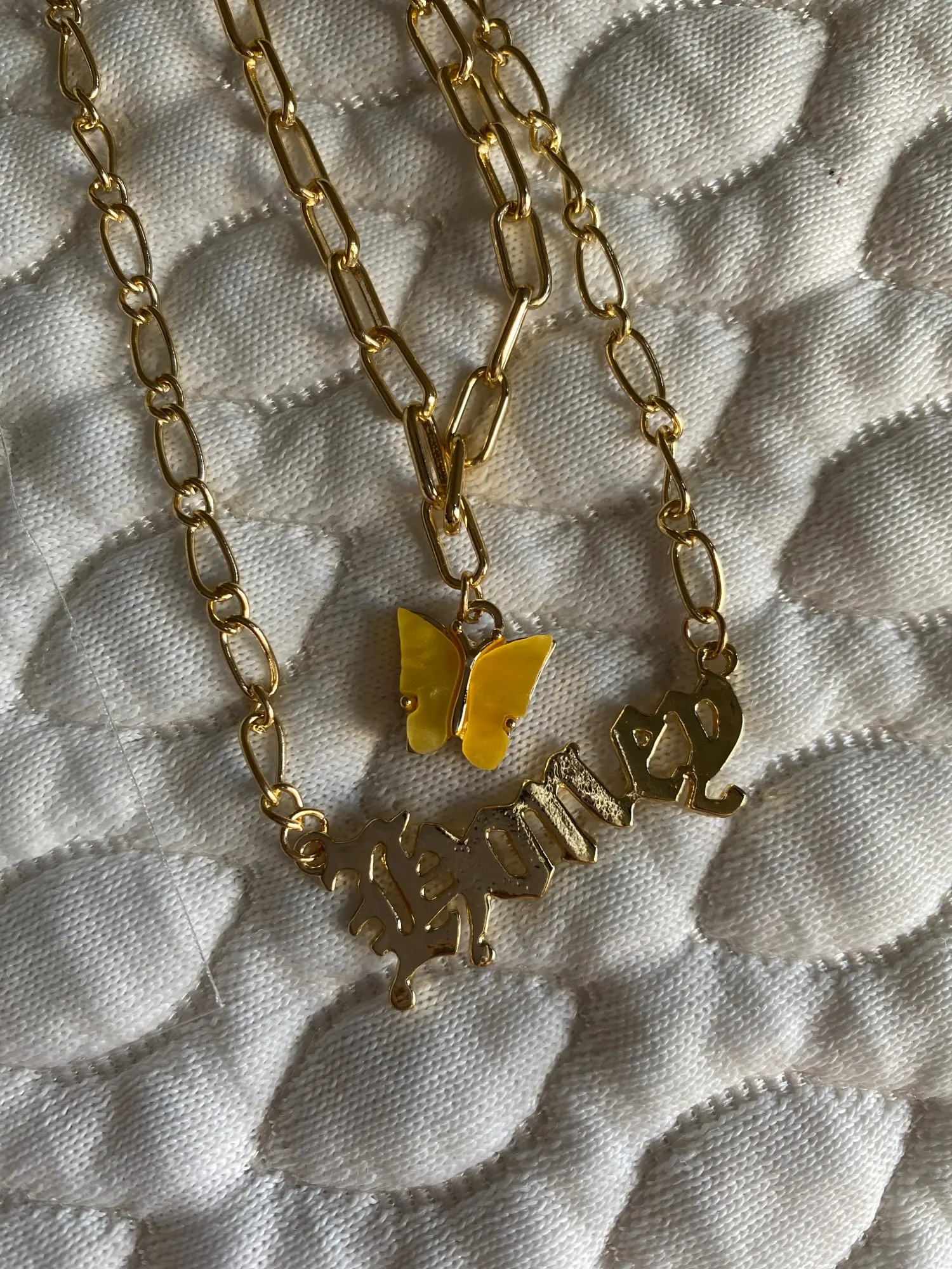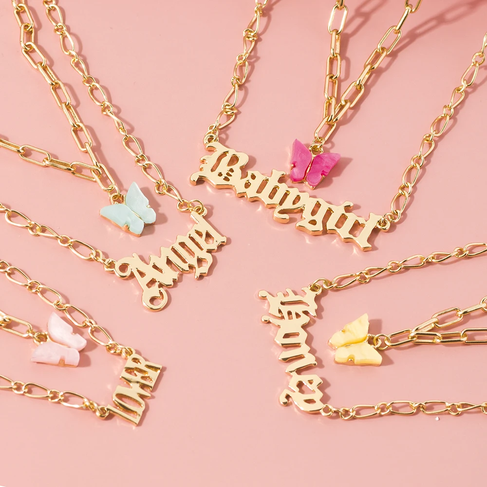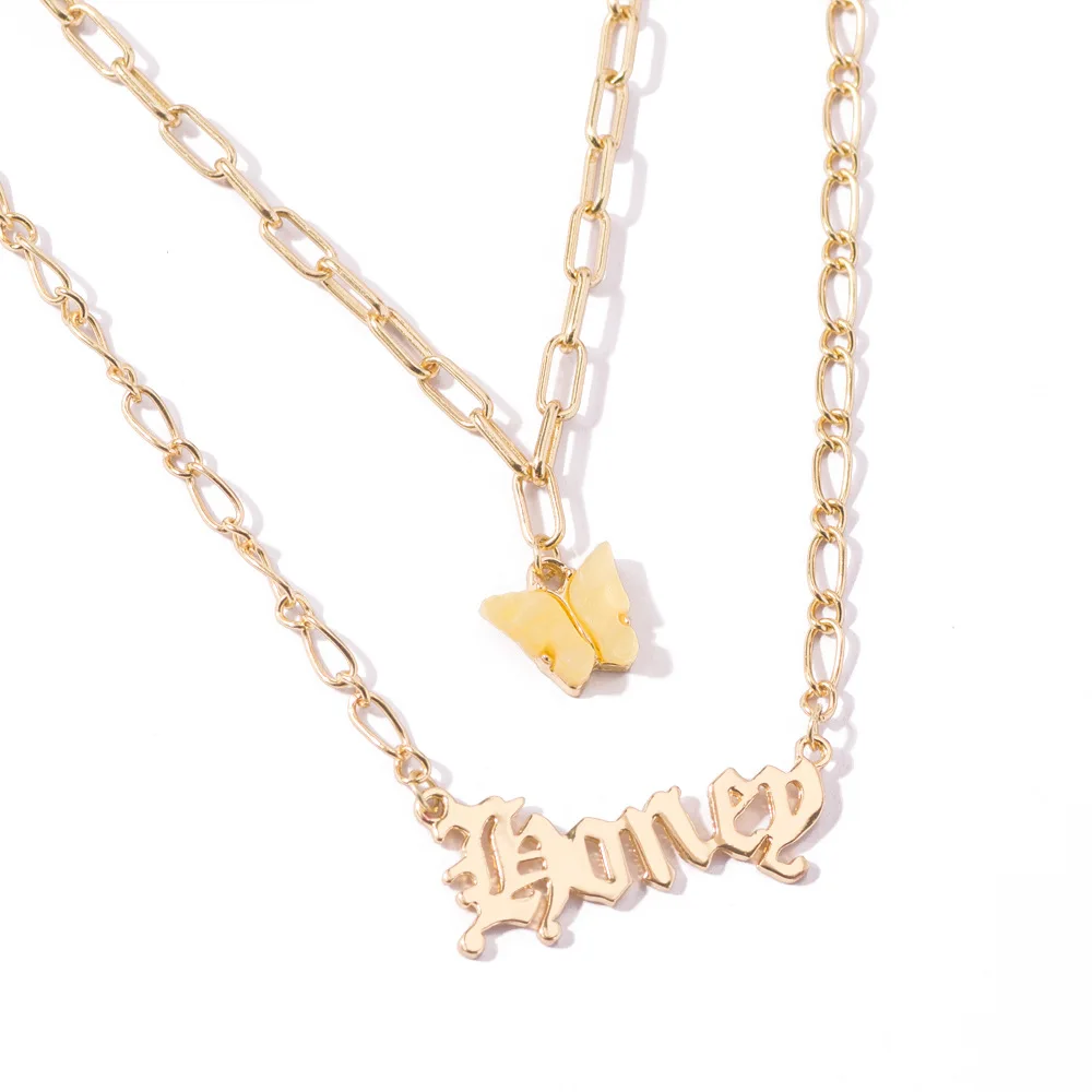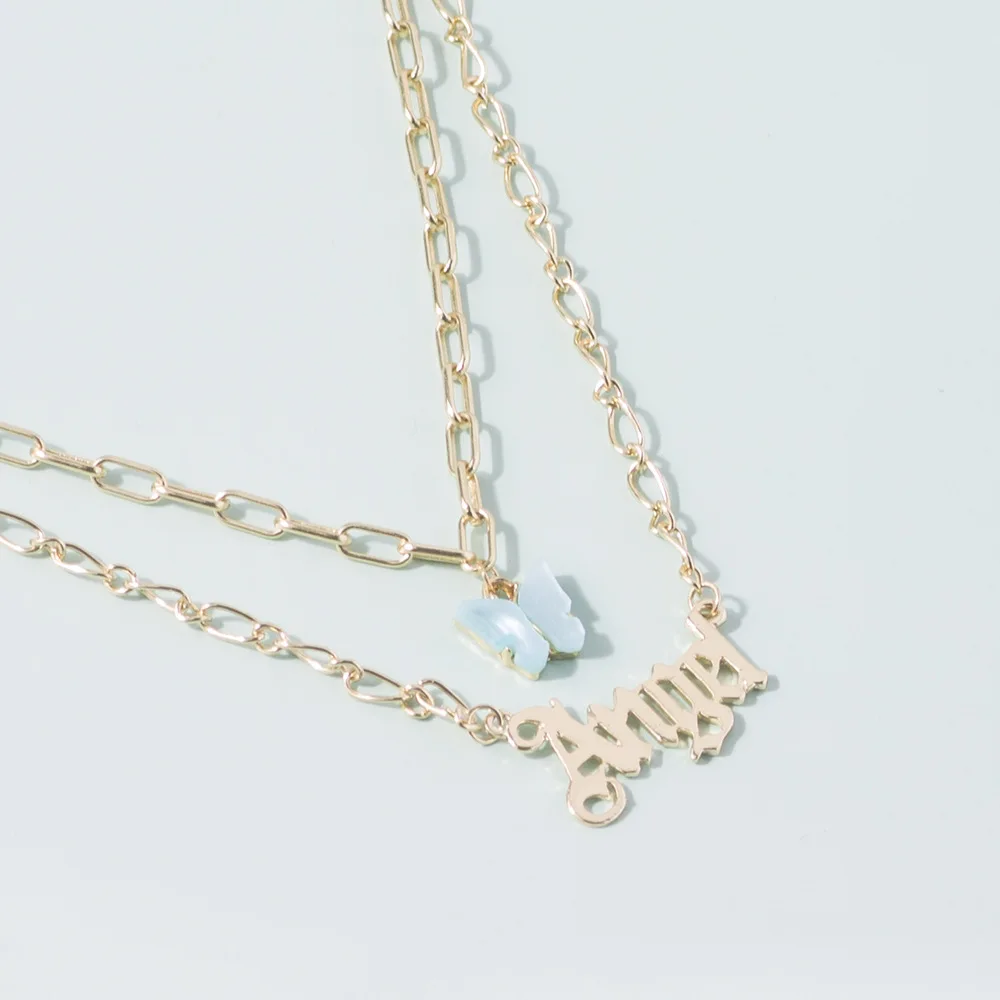 Двухслойное акриловое ожерелье с подвеской в виде бабочки