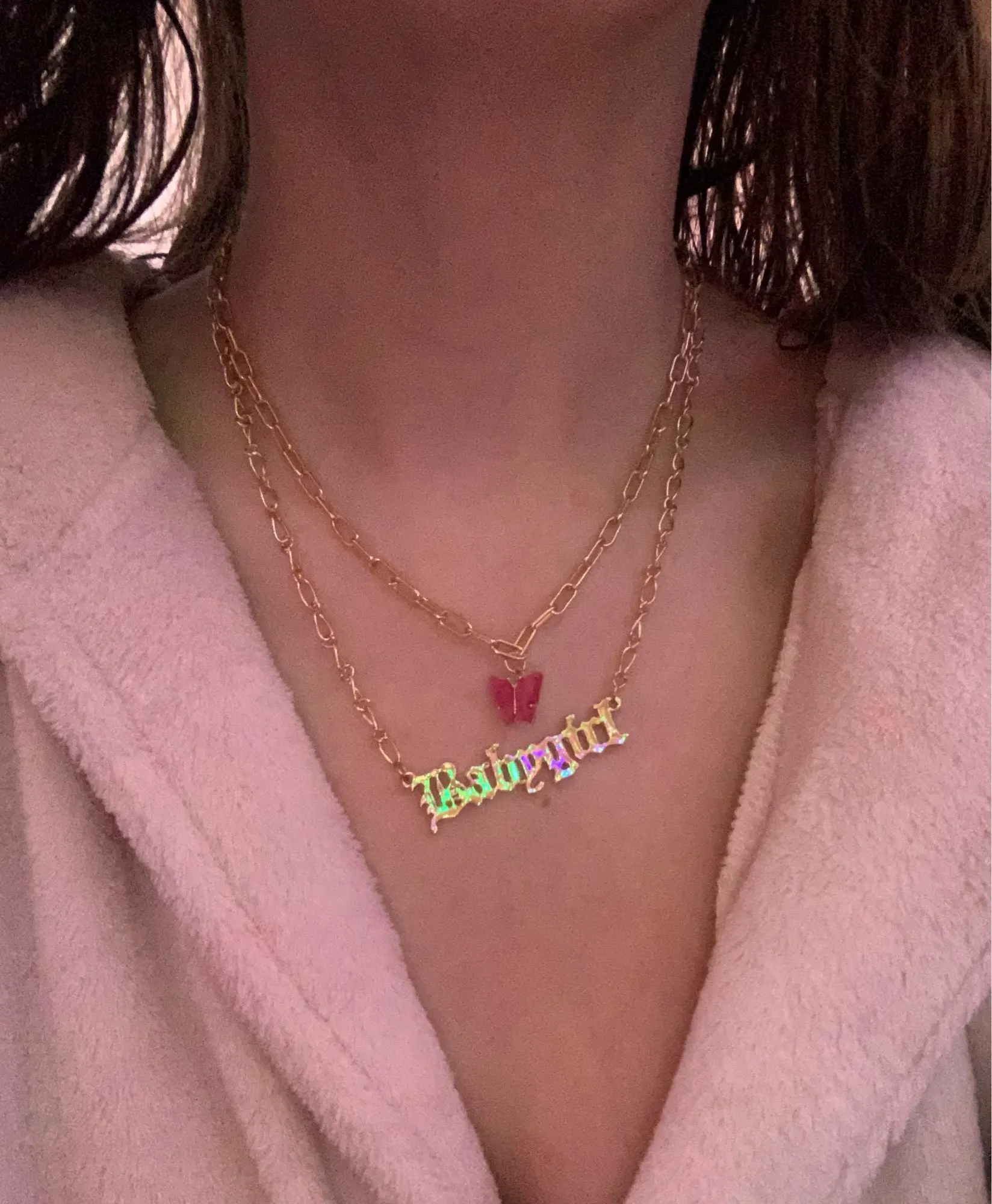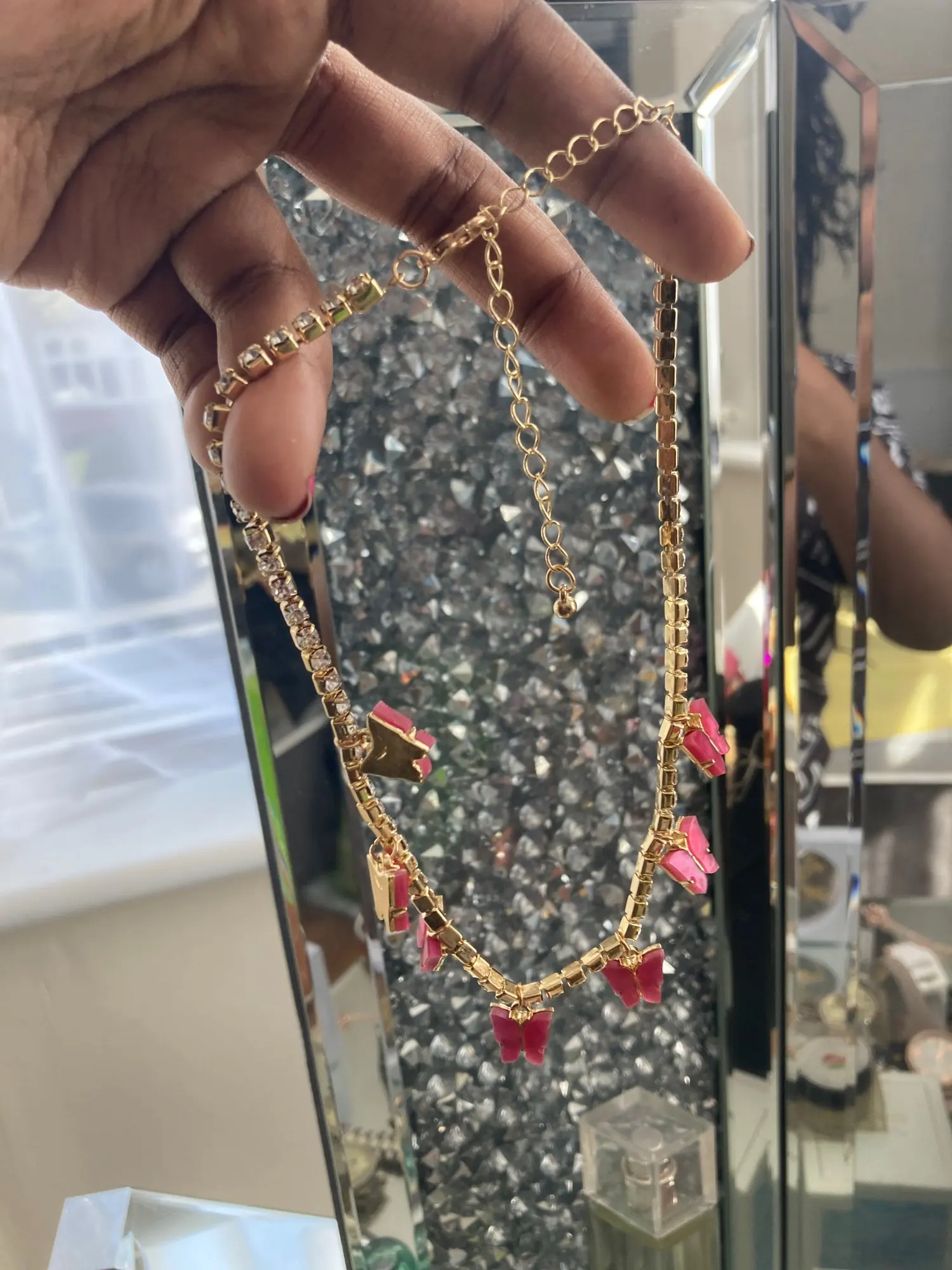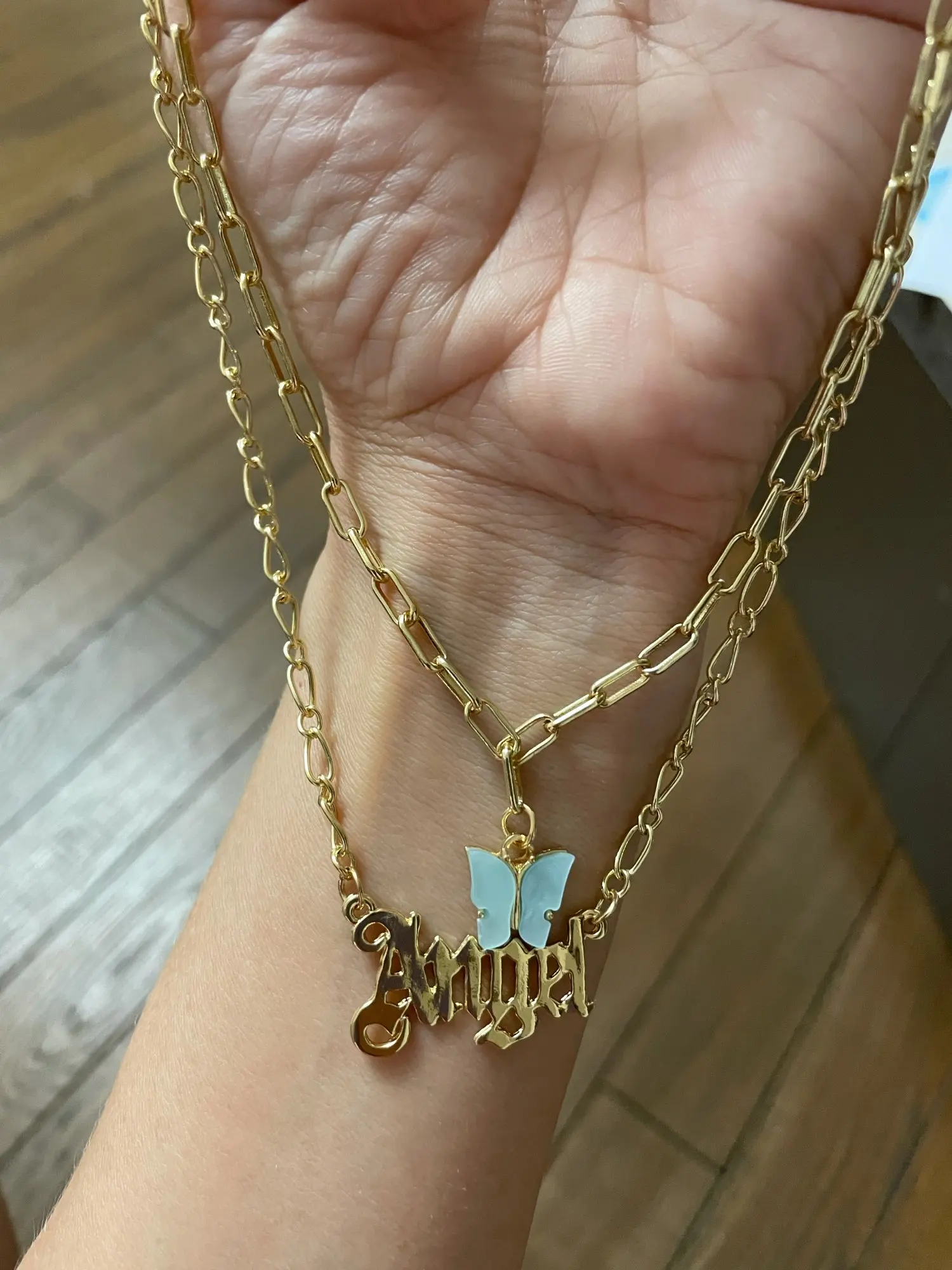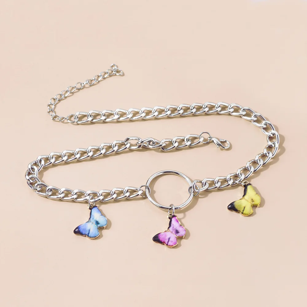 Двухслойное акриловое ожерелье с подвеской в виде бабочки