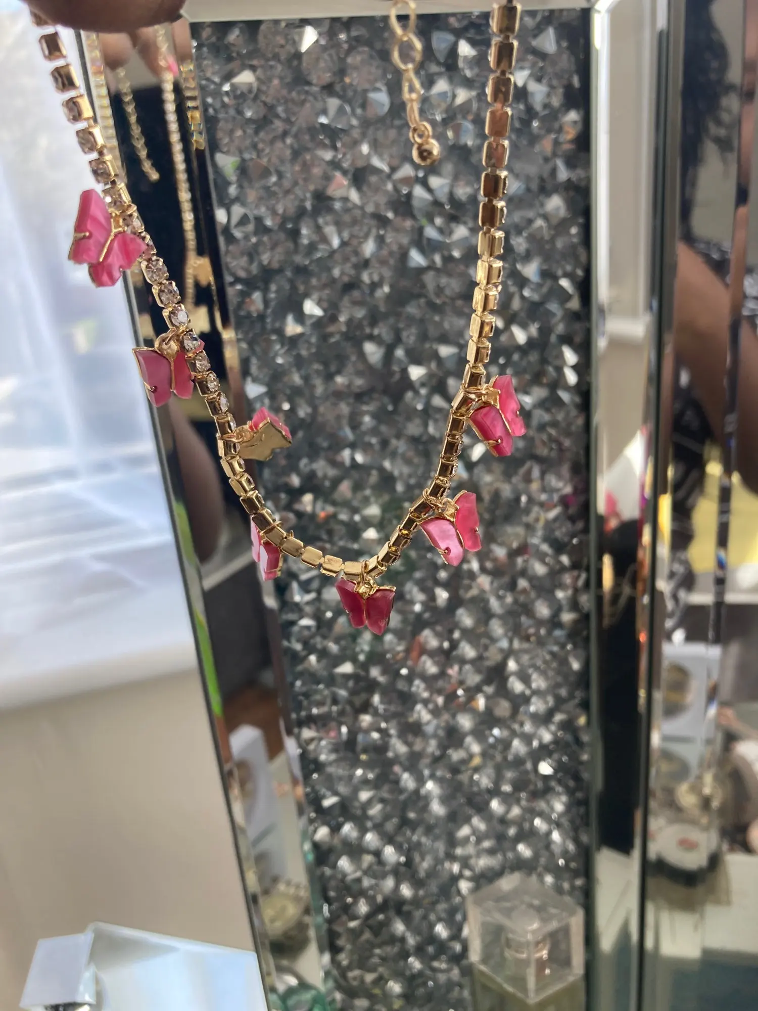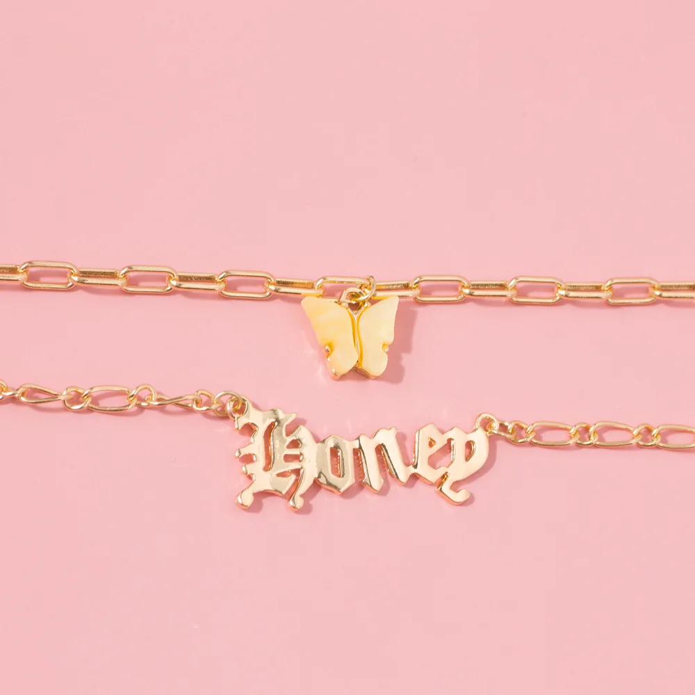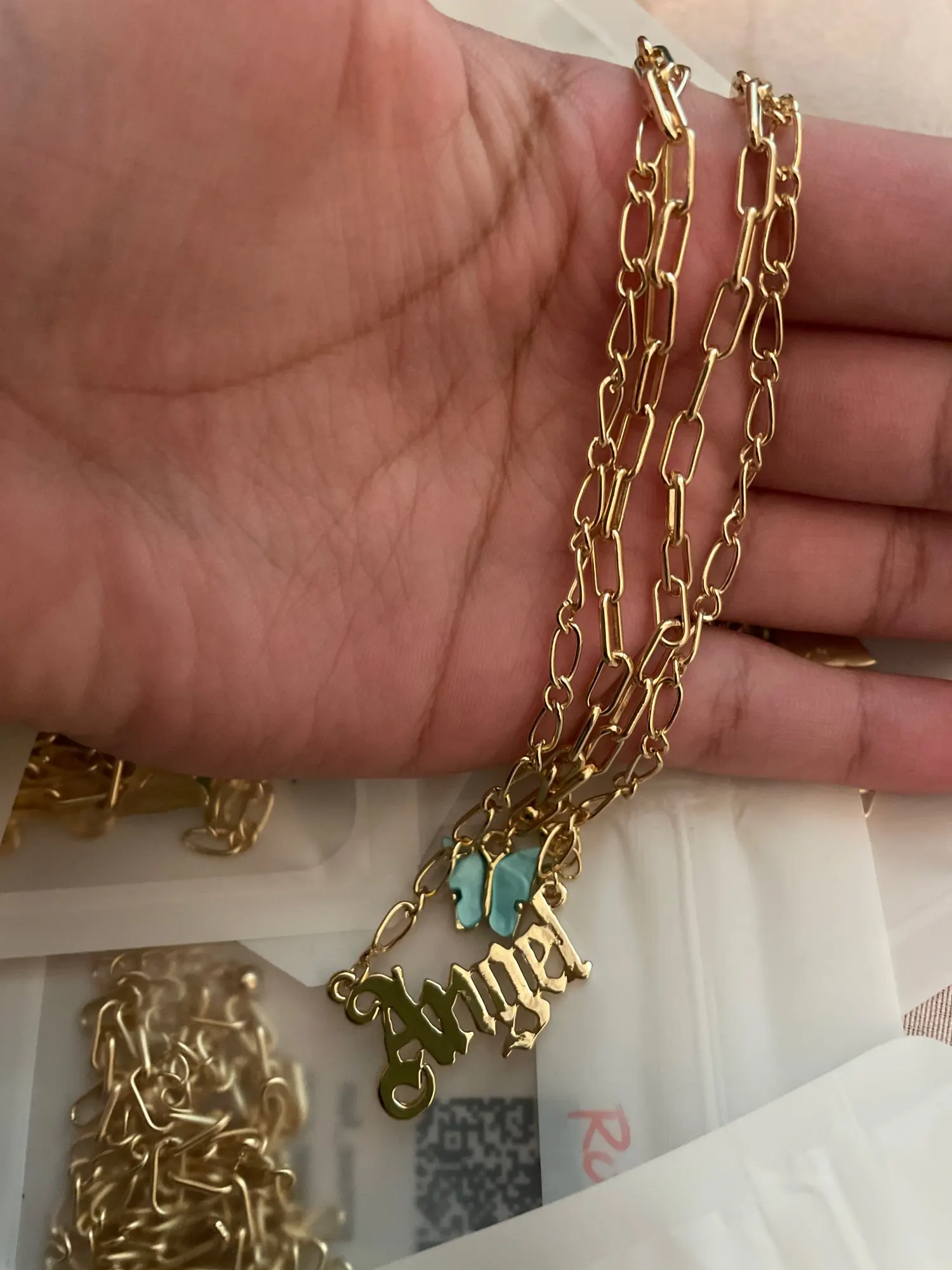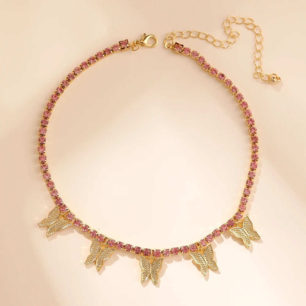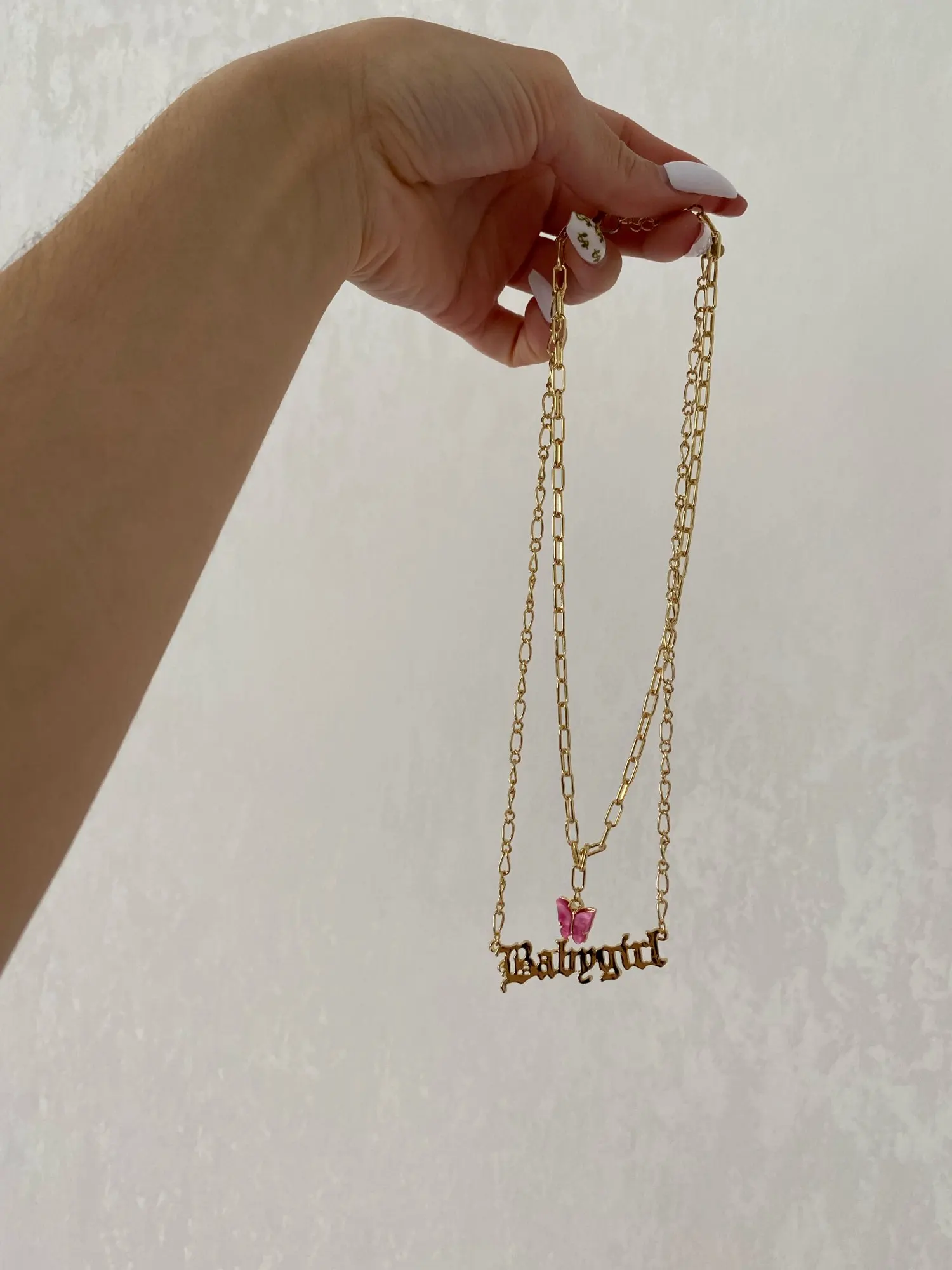 Двухслойное акриловое ожерелье с подвеской в виде бабочки