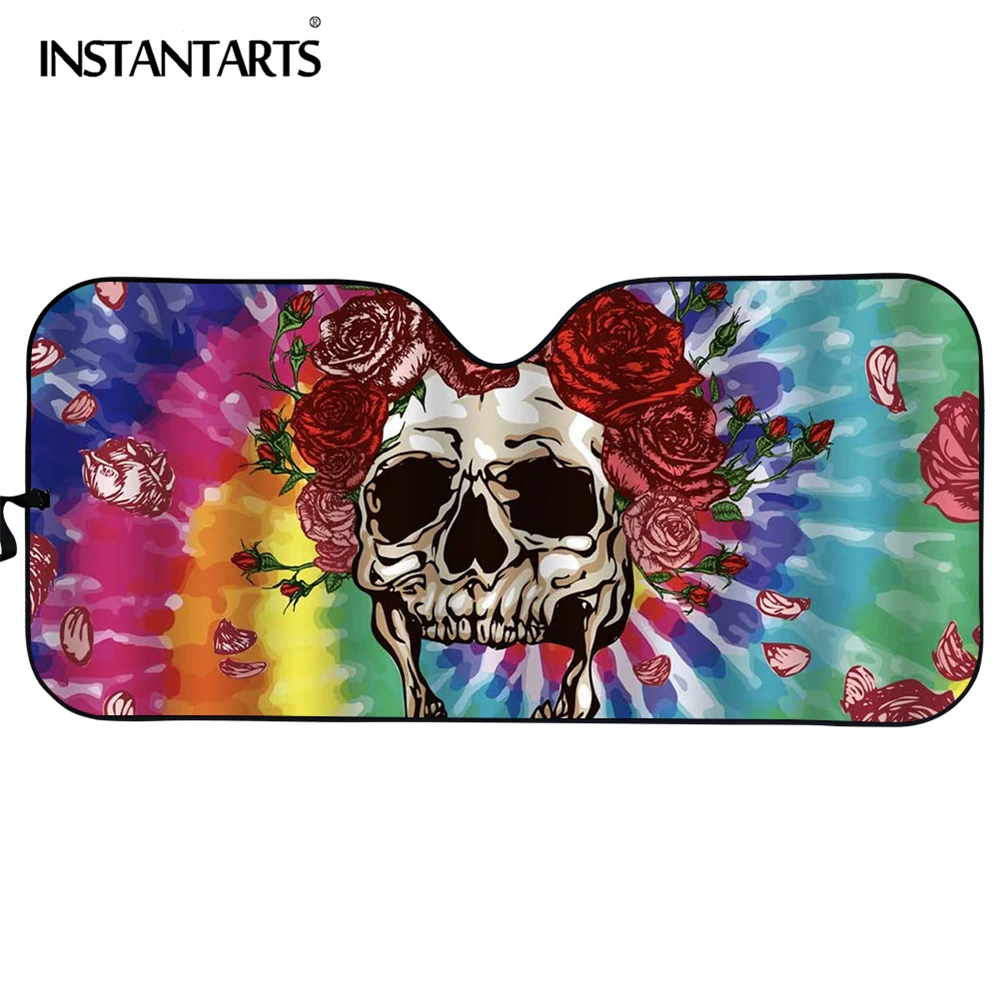 Автомобильный солнцезащитный козырек INSTANTARTS в стиле панк с изображением сахарного черепа для женщин и девушек аксессуары для интерьера солнцезащитный козырек на лобовое стекло