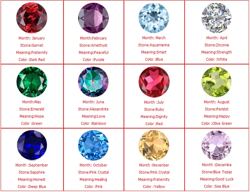 [Июль] рубин, достоинства, красный [Август] перидот, счастливый, оливковый зеленый [сентябрь] Сапфир, честный, темно-синий
