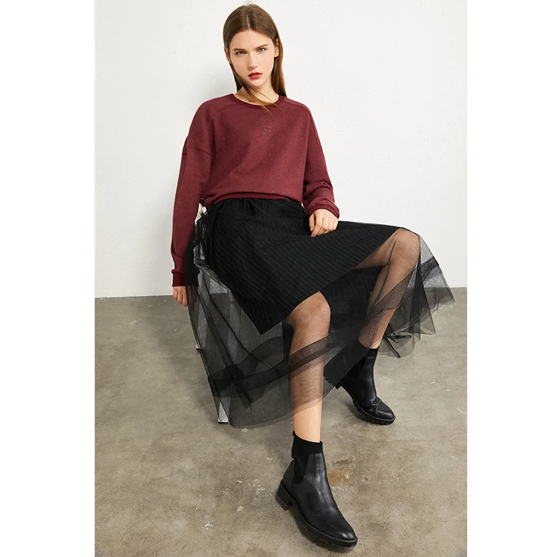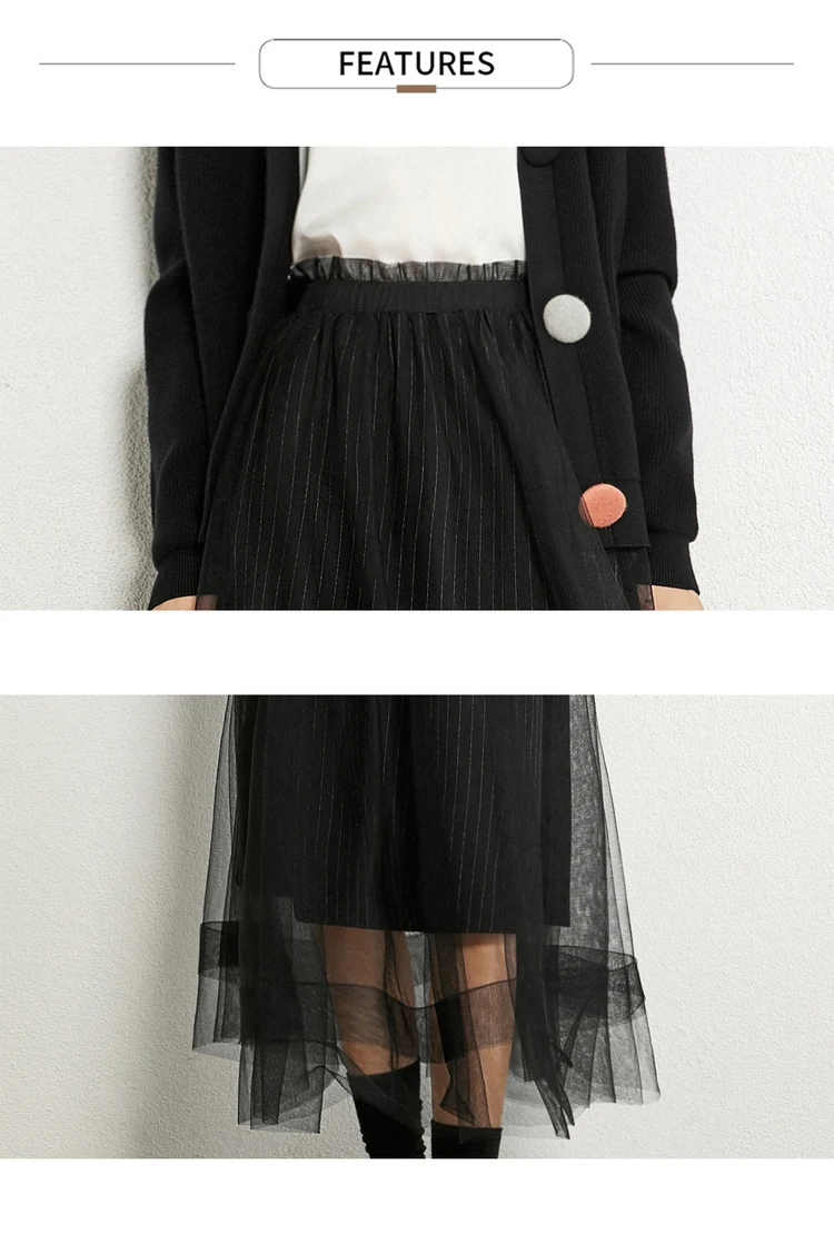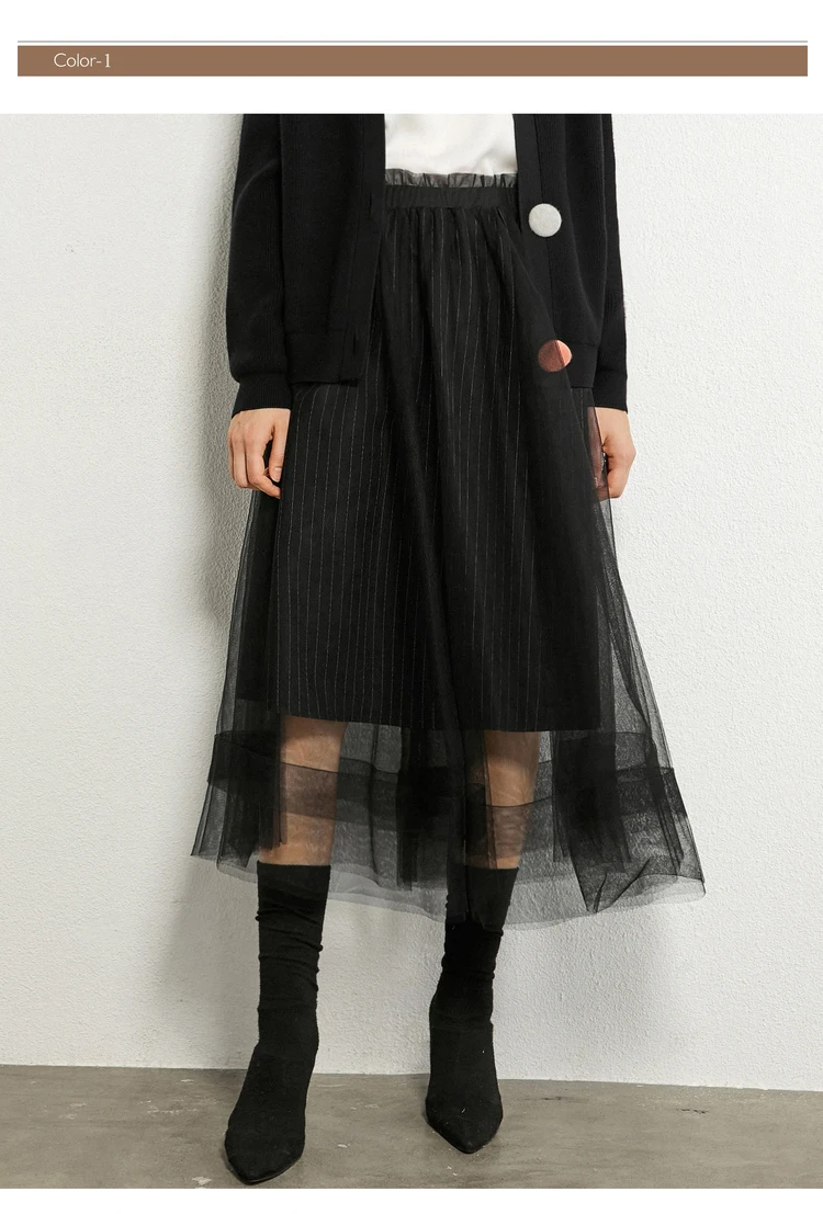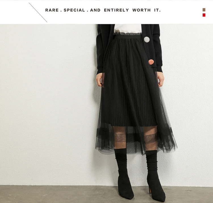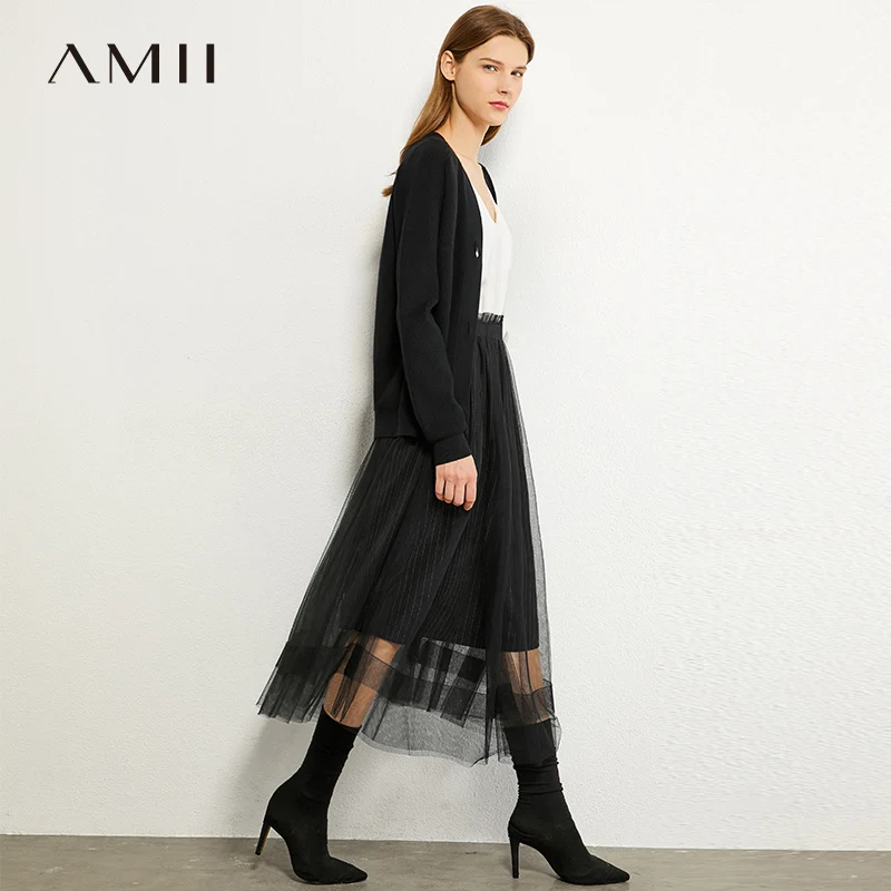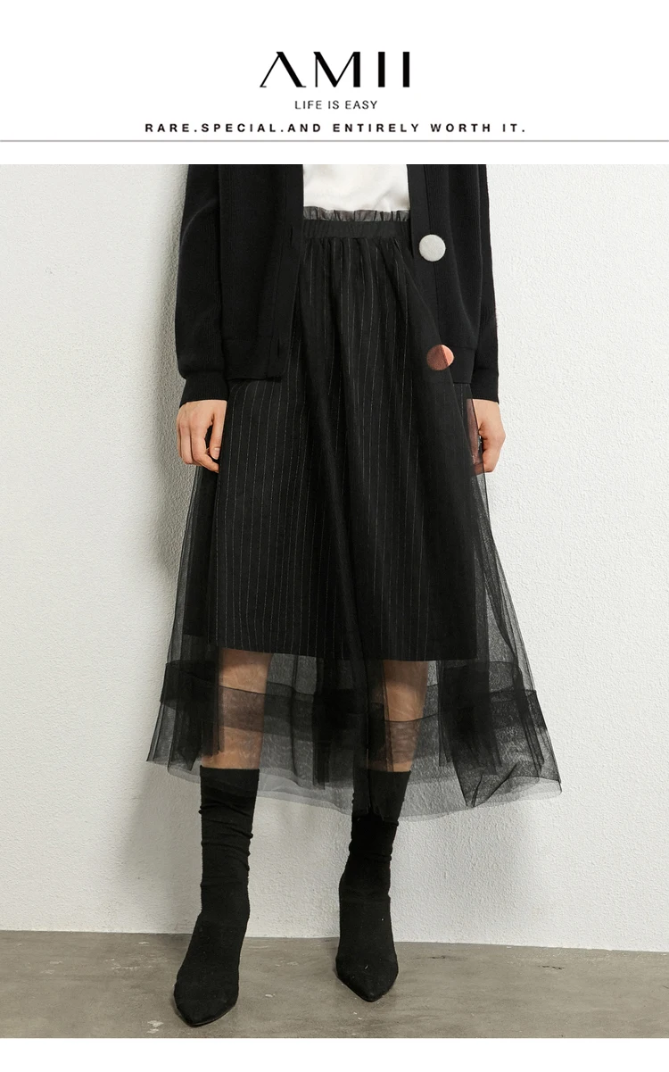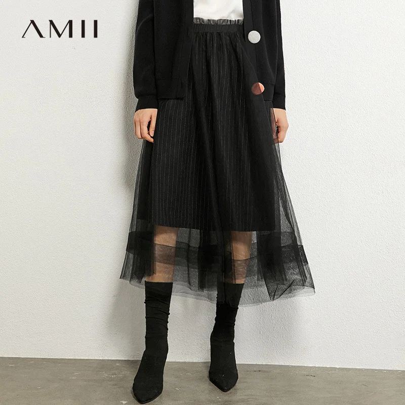 AMII минимализм Осенняя Женская юбка модная однотонная свободная кружевная алиновая Женская юбка с эластичным поясом Женская юбка 12040459