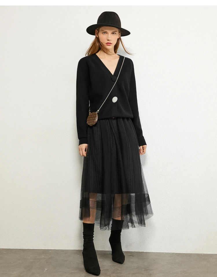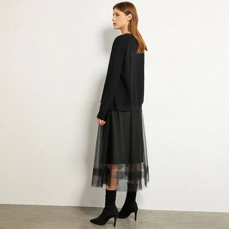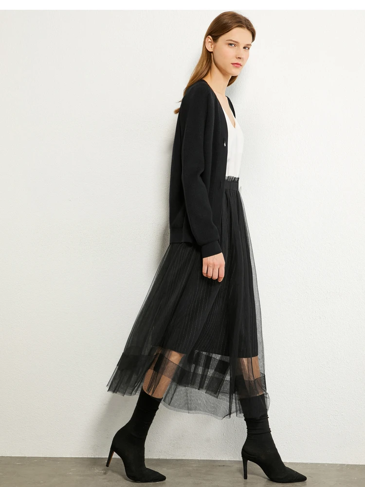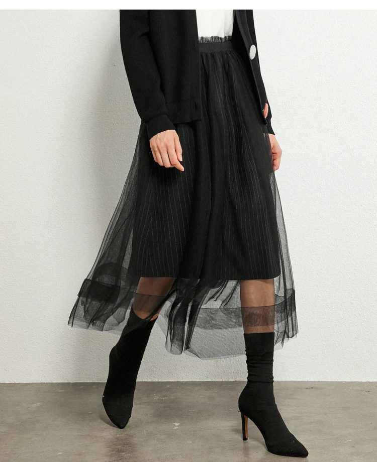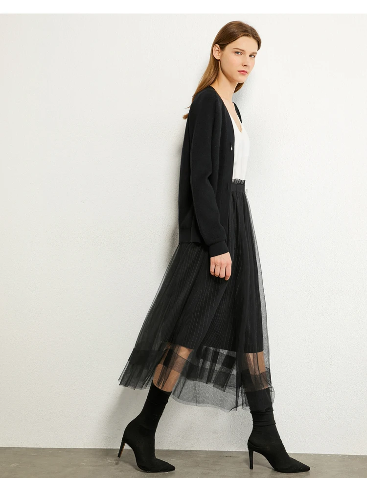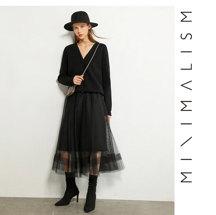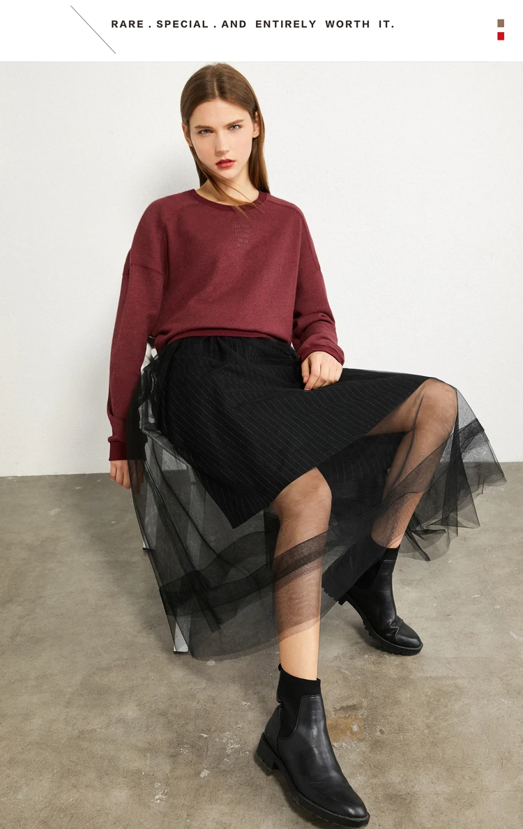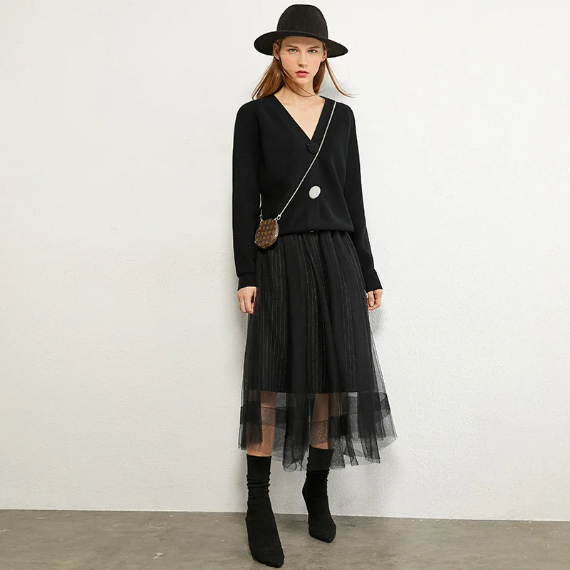AMII минимализм Осенняя Женская юбка модная однотонная свободная кружевная алиновая Женская юбка с эластичным поясом Женская юбка 12040459