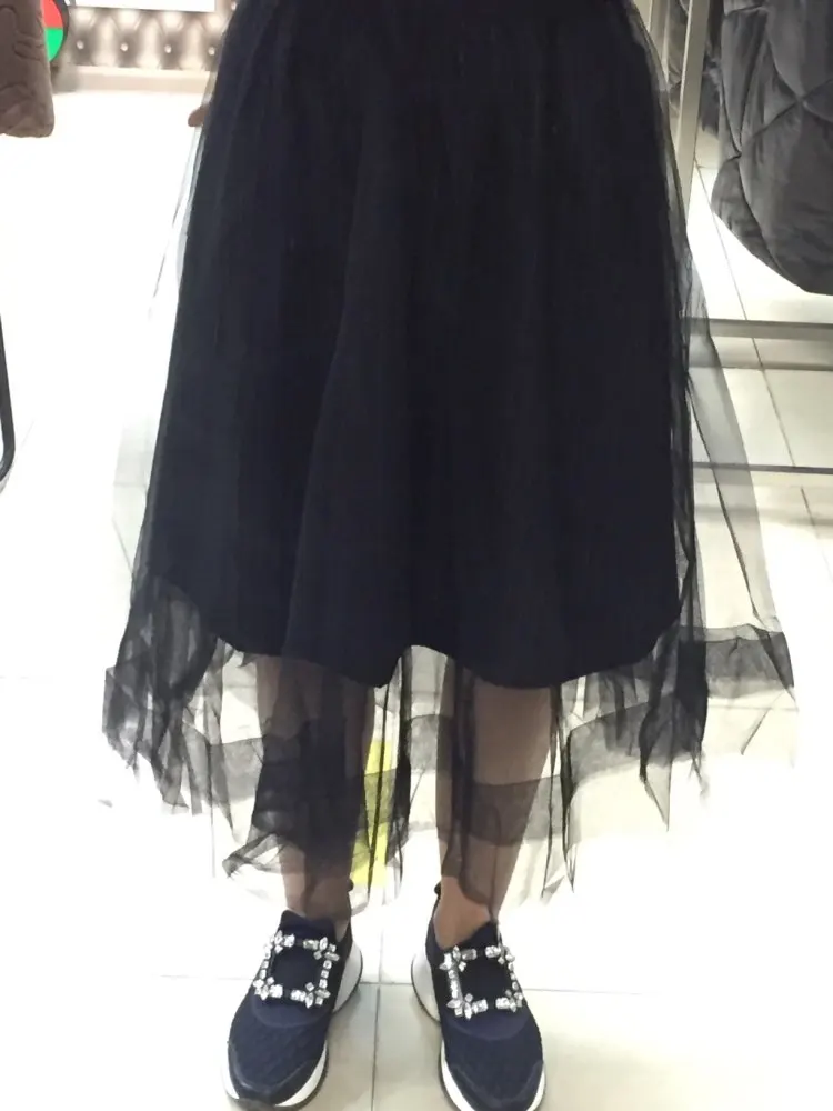 На талию 74 L свободновато, резинка не впритык, можно заправить даже джемпер, М будет сидеть плотно, здесь уж кому как больше нравится. Юбка сшита качественно, не электризуется, внизу плотная костюмная ткань, сверху фатин. На рост 164 фатин на 5 см выше косточки.