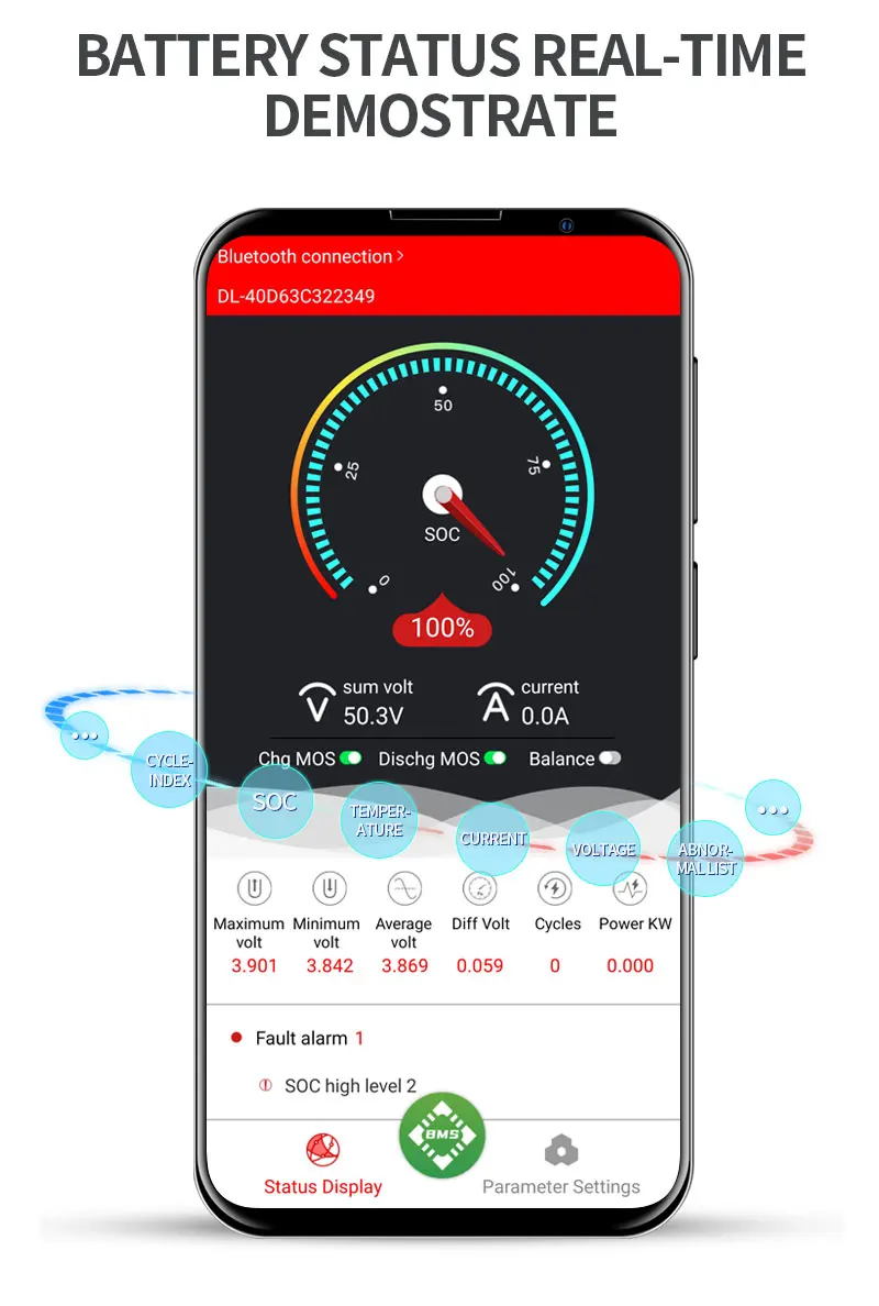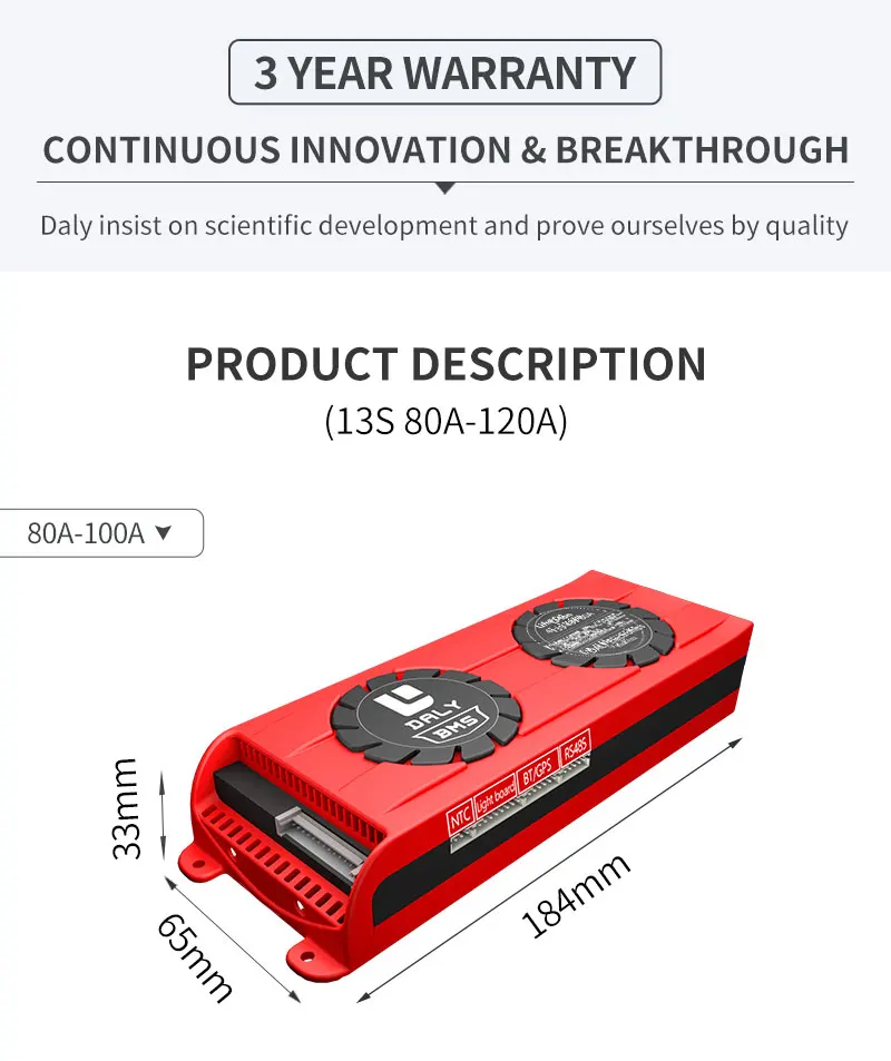 Daly 18650 smart superpower BMS 13S 48V 80A 100A 120A баланс bms для литиевой батареи с вентилятором для электрической батареи◆ В настоящее время все умные BMS без водонепроницаемой функции.◆ Эта ссылка предназначена для литий-ионного аккумулятора 13S 48V. Пожалуйста, заполните параметр после размещения заказа, чтобы обеспечить SOC правильной информацией.По крайней мере, ответ должен быть отправлен нам Aliexpress центром сообщений. Спасибо.Особенности◆ UART: это обычный продукт Daly. UART является универсальным асинхронным приемником/передатчиком, он трансформирует данные для передачи между последовательной связью и параллельной связью. Как чип для преобразования параллельных входных сигналов в серийные Выходные сигналы, UART обычно интегрируется в другие коммуникационные интерфейсы.◆ RS485: Пожалуйста, выберите модель RS485 Daly. RS-485 принимает сбалансированную передачу и дифференциальный прием, поэтому он имеет способность подавлять помехи в обычном режиме.◆ Модуль Bluetooth: если вам нужна эта функция, пожалуйста, выберите модуль bluetooth, если вы не покупаете его, мы не отправим его вам.◆ Ниже аксессуары нужно купить отдельно.1.USB к UART кабель 2.USB к RS485 кабель 3. Модуль Bluetooth 4. Панель дисплея питания (активация ключа) 5.BMS сенсорный экран управления1. DL13S 48V Smart BMS 80A 100A 120A bms можно использовать для 13S Li ion или LiFePO4 или аккумулятор лто pack. Клиент может отрегулировать paramter перезарядки или переразряда параметр сидя и другие параметры, если клиенту нужно использовать какой тип батареи для той же серии батареи.Внимание:Клиент должен определить серии батарей, затем выбрать ту же серию BMS. Например, ваш аккумулятор 24S, вы должны выбрать 24S BMS, не можете выбрать 20 или другой. Номер серии BMS фиксирован, не регулируется после отправки BMS.◆ Инструкции по управлению: контроль устройства дистанционного управления.◆Значок транспортного средства: передача данных отправка команды◆Статистический отчет: собирайте информацию о данных, клиент может контролировать емкость аккумулятора и другую информацию о тревоге.◆Электронный забор: Предельный Диапазон забор.◆Информация об устройстве: информация о параметрах устройства и т. д.Информацию о вашем аккумуляторе можно проверить на вашем хост-компьютере, затем вы можете контролировать состояние батареи в любое время. Который легко контролирует ваше устройство. Умные BMS делают нашу жизнь легкой.