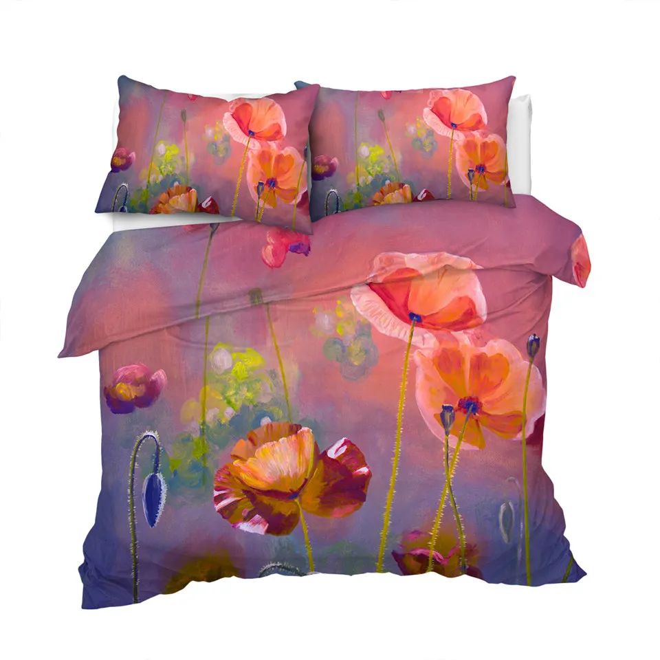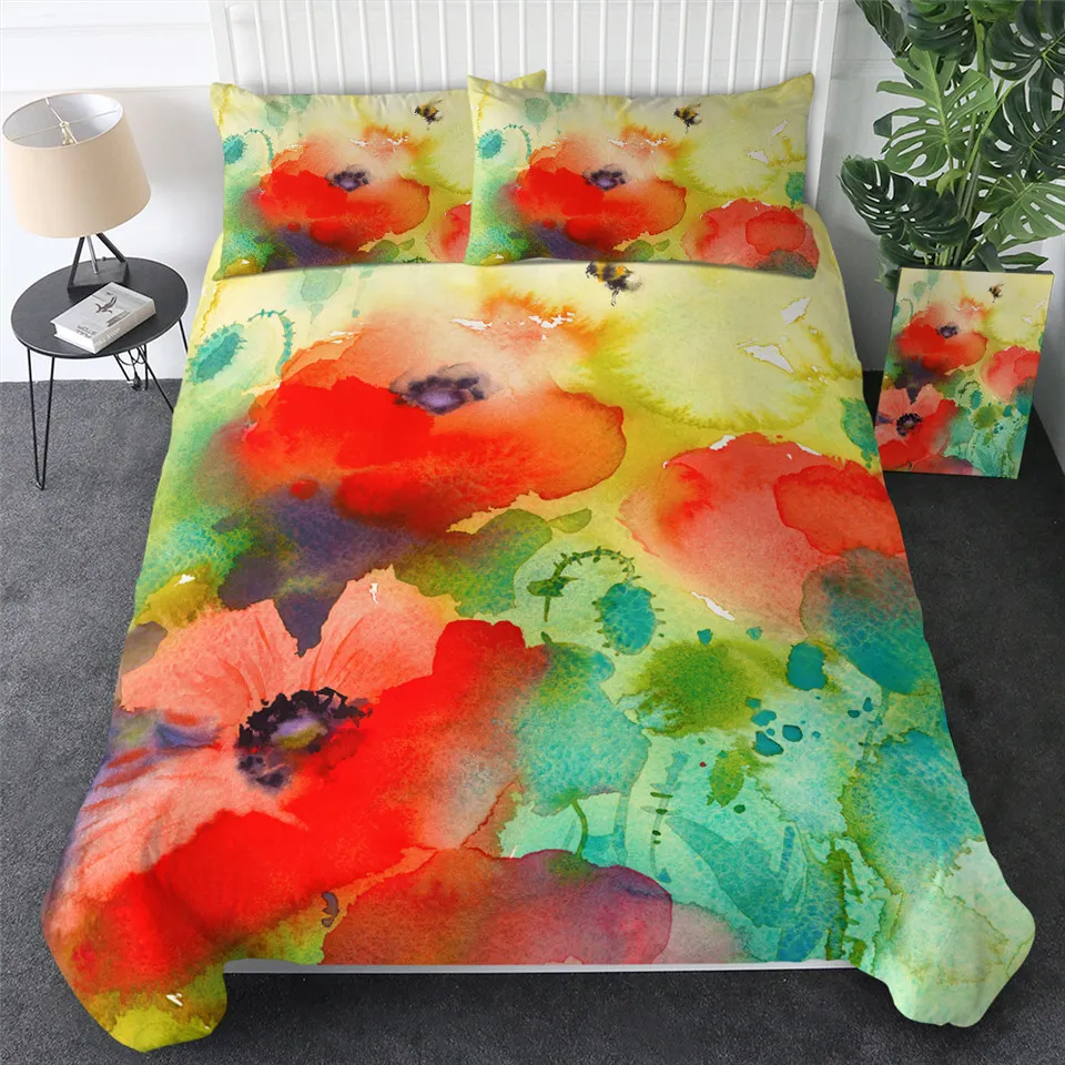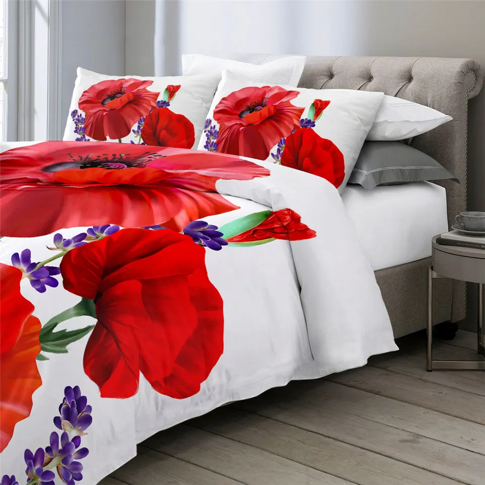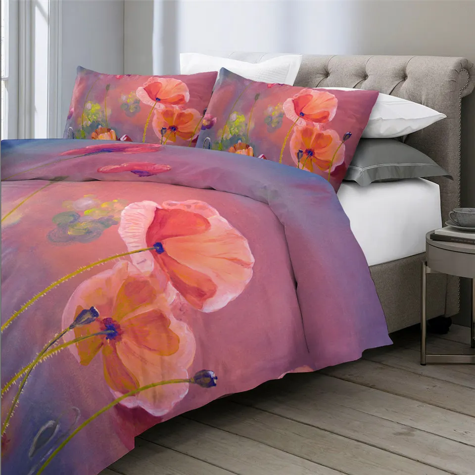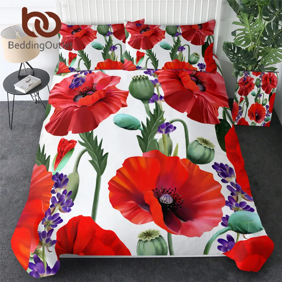 Комплект постельного белья BeddingOutlet с красным маком, пододеяльник с цветущими цветами, королева, 3 предмета, акварельный домашний текстиль, лавандовый Шикарный Розовый комплект кровати